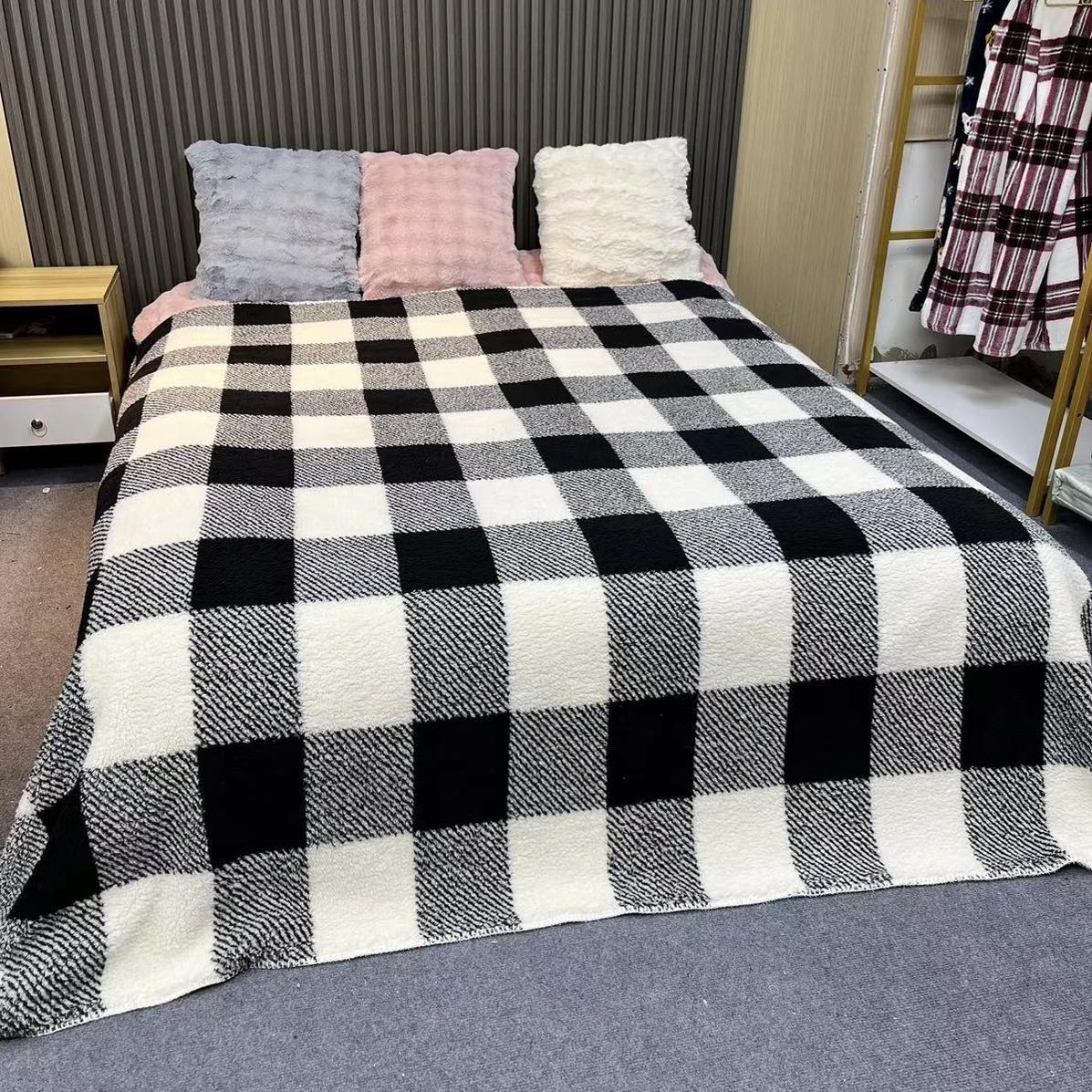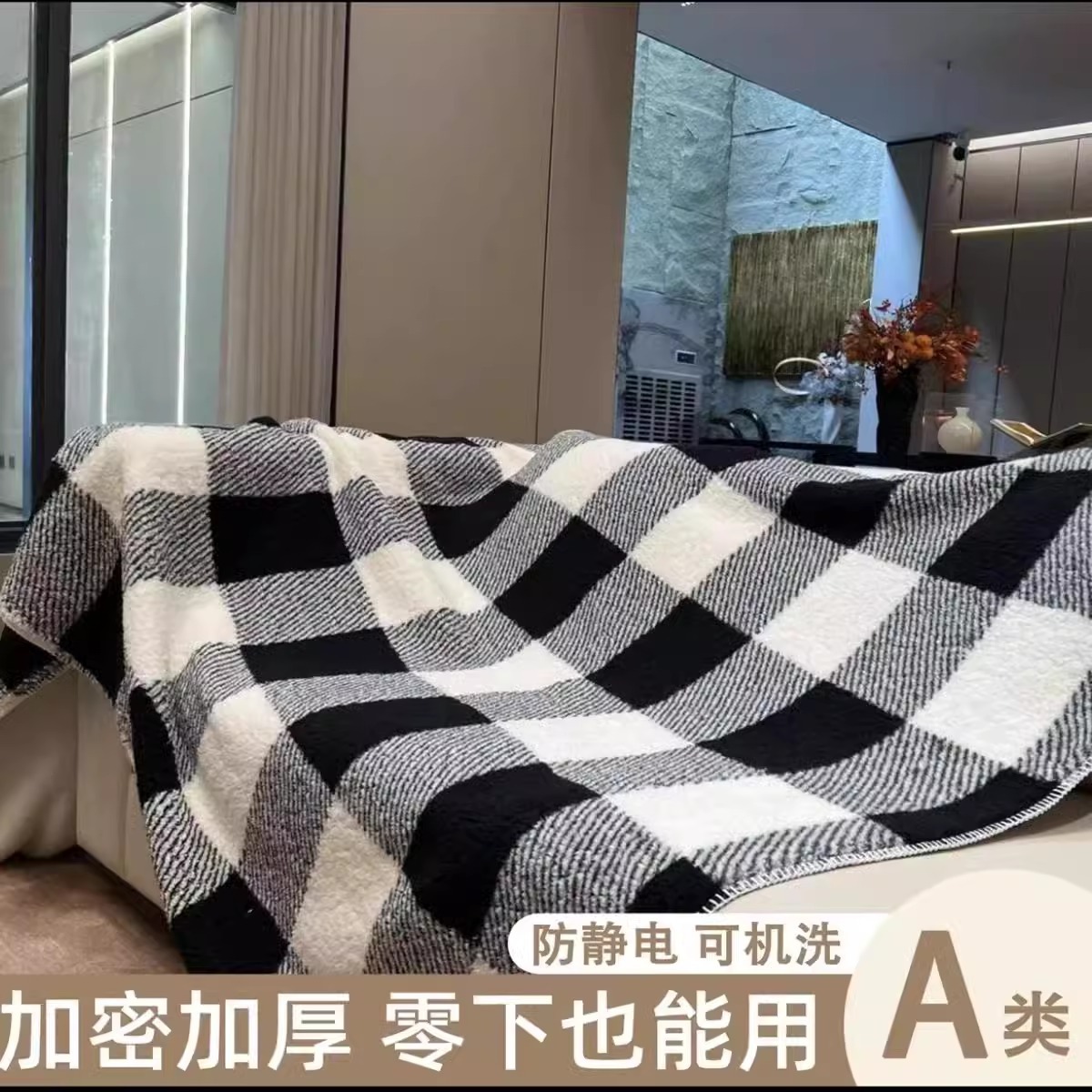 • 흑백 체커보드 담요 [이중 두껍게]