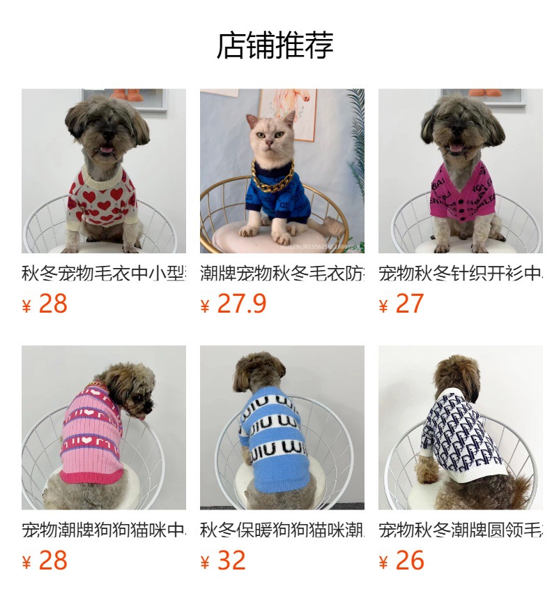 애완 동물 가을과 겨울 패션 브랜드 니트 조끼 개 고양이 테디 보 메이 Fa Dou Corgi Bixie Keji 따뜻한 스웨터스토어 가기