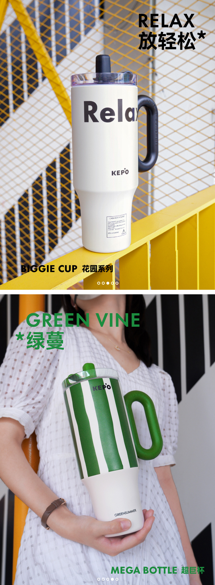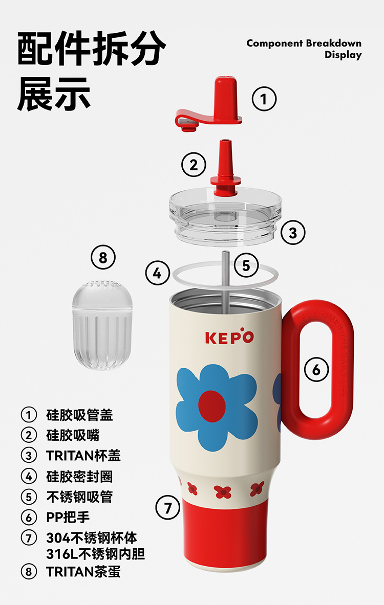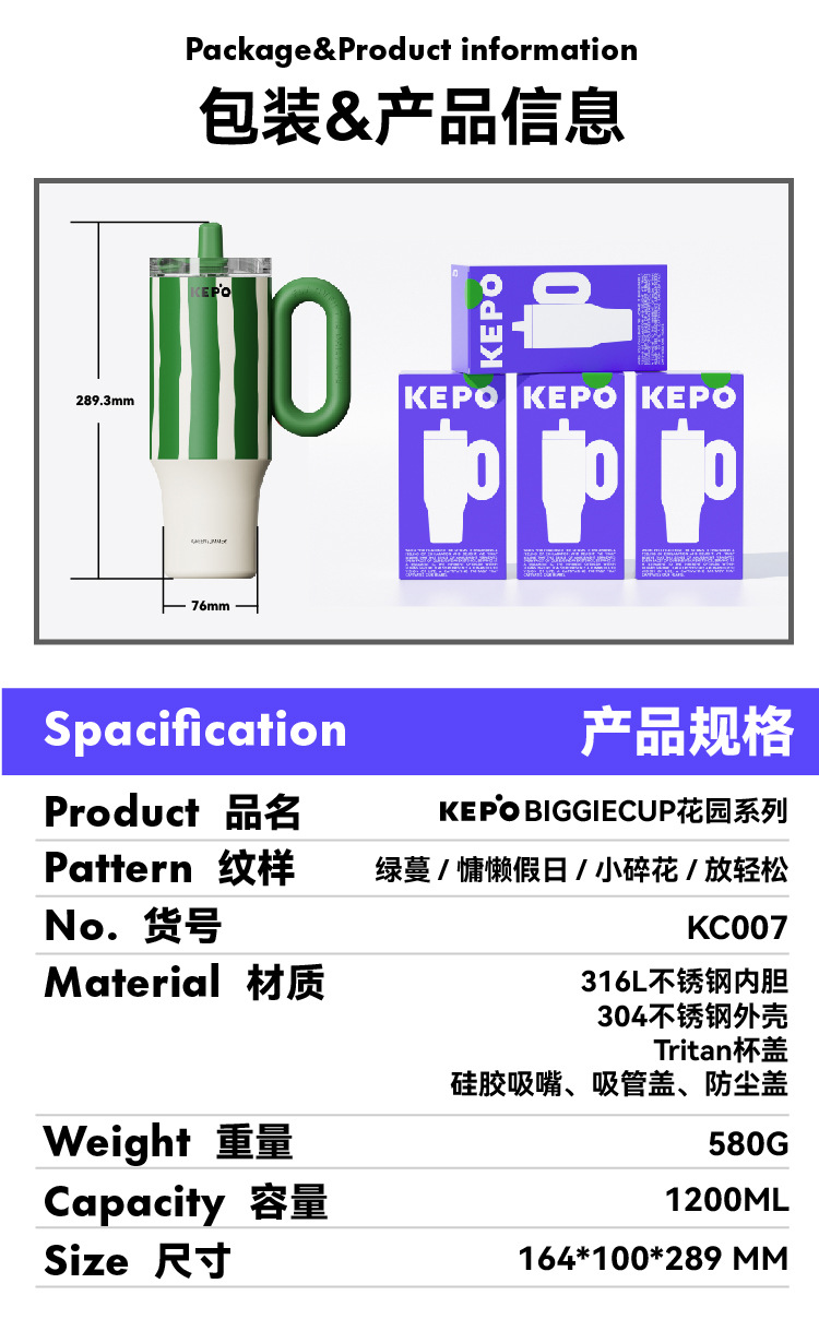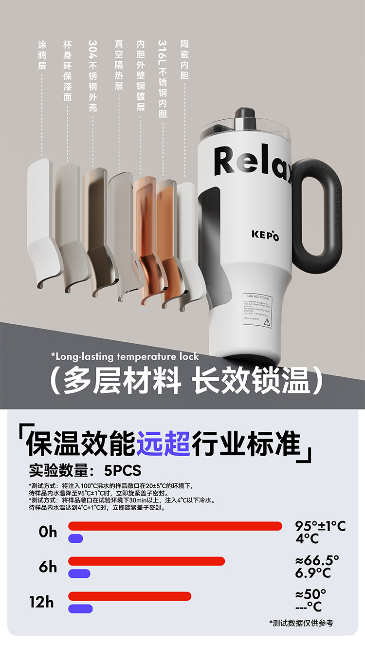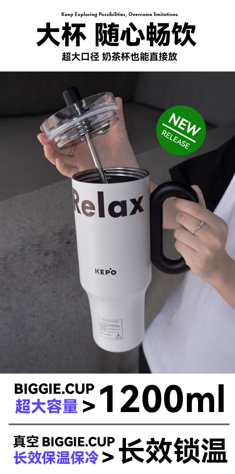 KEPO 빅 맥 대용량 보온병 컵 316L 스테인레스 스틸 자동차 컵 하이 컬러 흡입 컵 소녀 새로운 스타일스토어 가기
