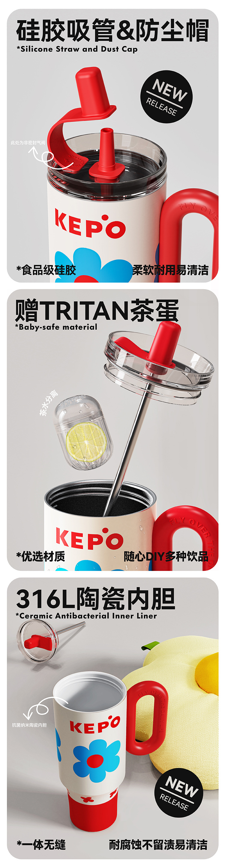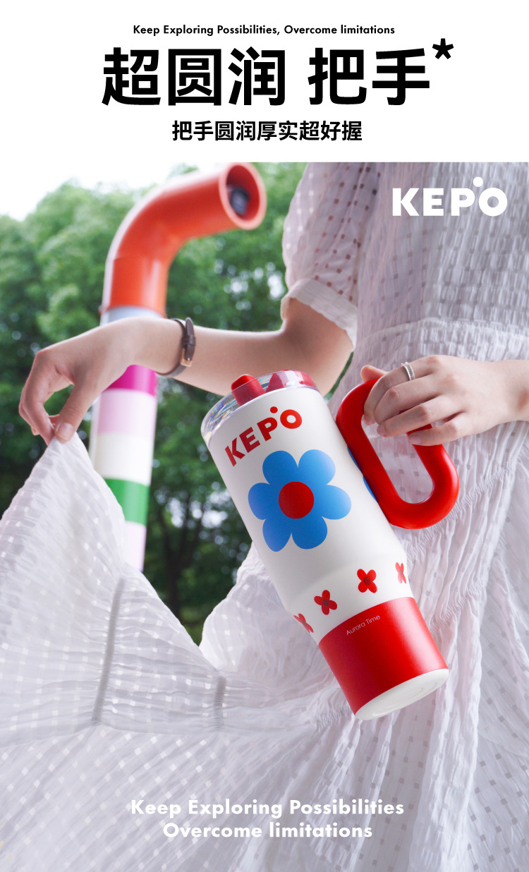 KEPO 빅 맥 대용량 보온병 컵 316L 스테인레스 스틸 자동차 컵 하이 컬러 흡입 컵 소녀 새로운 스타일