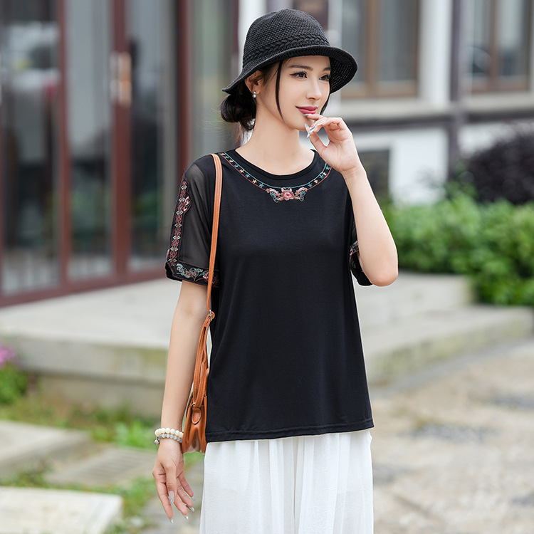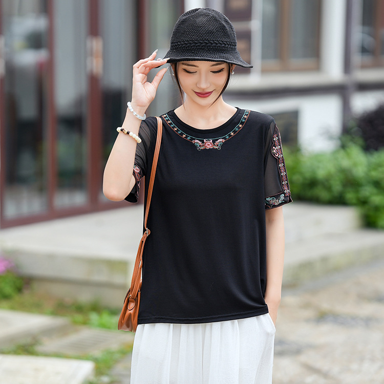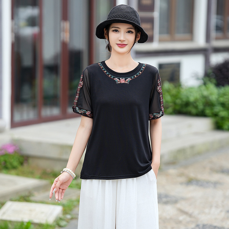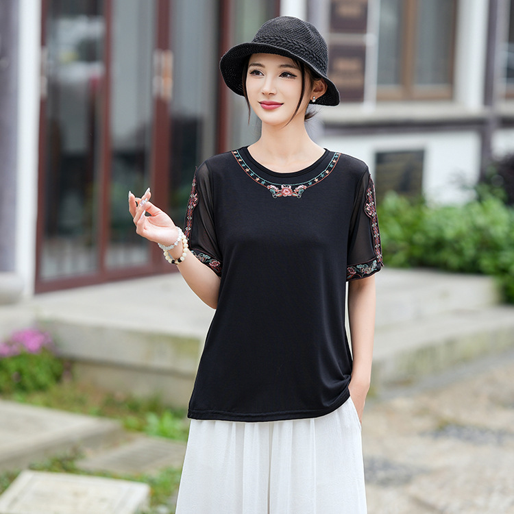 2025년 여름 여성복 루즈핏 배 가리개 반팔 티셔츠 플러스 사이즈 스타일리쉬하고 세련된 쉬폰 탑스토어 가기