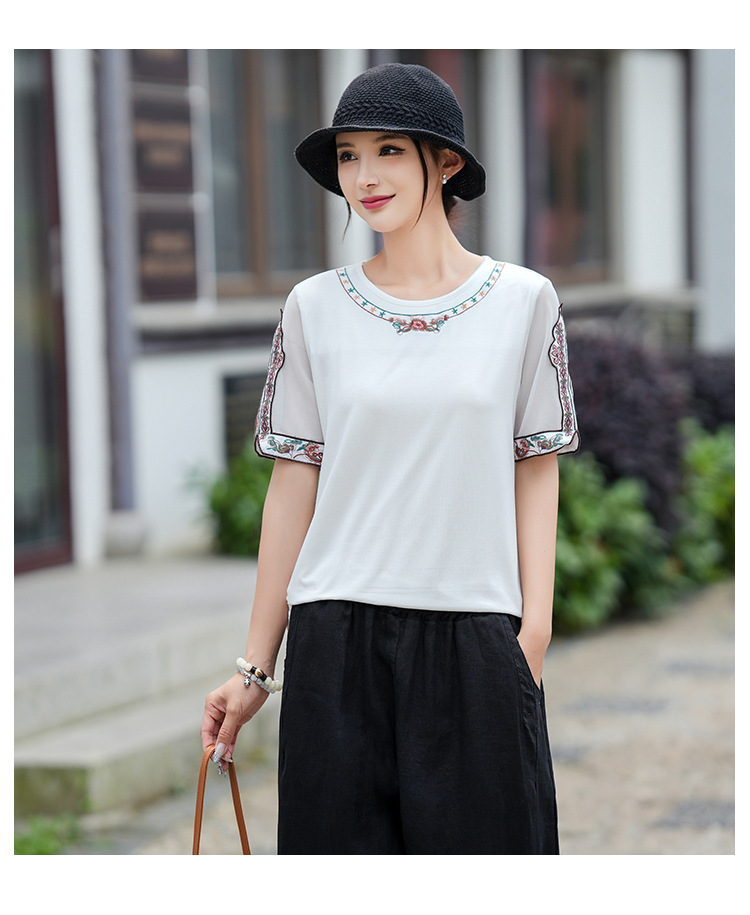 2025년 여름 여성복 루즈핏 배 가리개 반팔 티셔츠 플러스 사이즈 스타일리쉬하고 세련된 쉬폰 탑