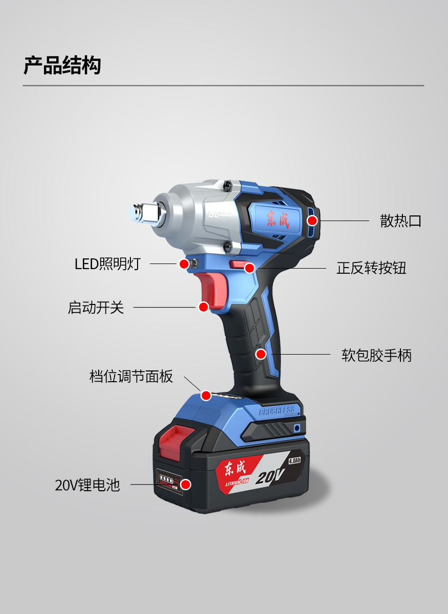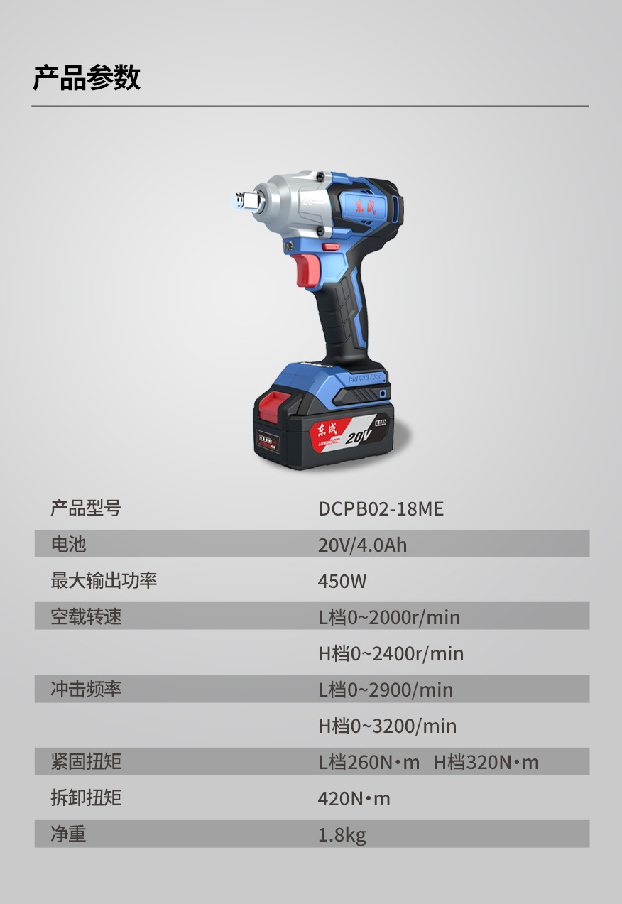 동성 무단계 속도조절 정역회전 420N 토크 DCPB02-18 충전식 브러시리스 임팩트 렌치