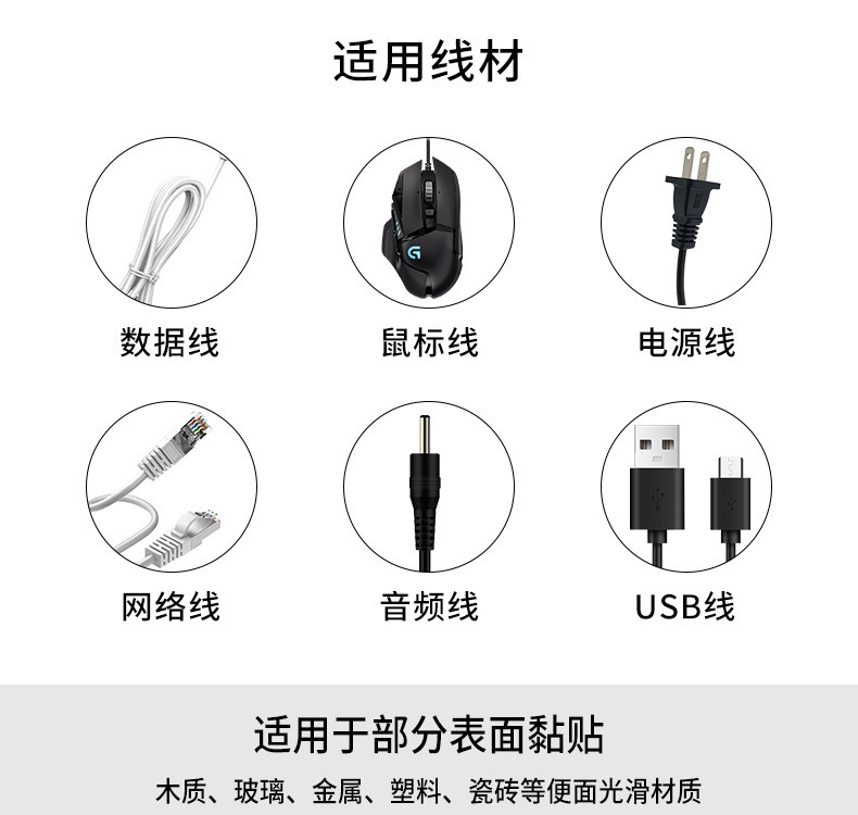 재고 있음 R형 케이블 정리 클립 아크릴 접착식 배선 클립 전선 고정 클립 접착식 전선 정리기