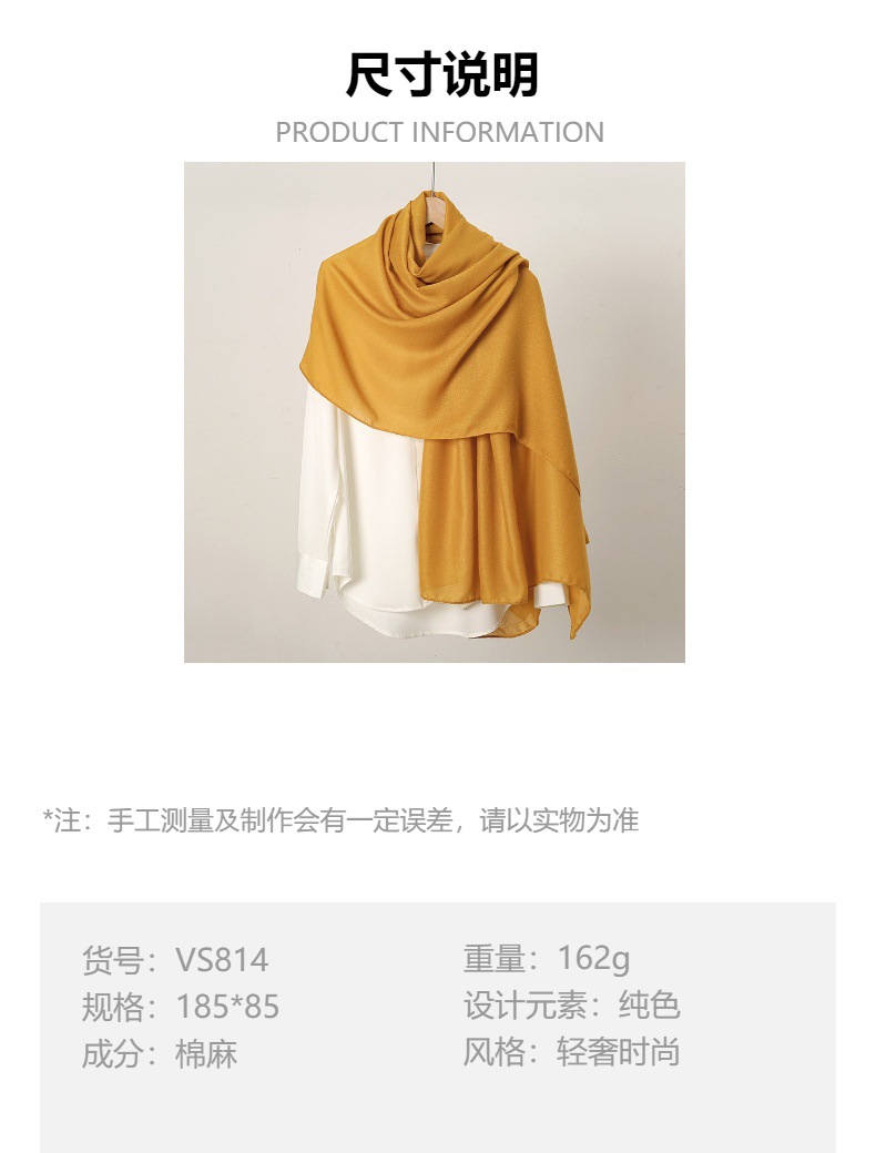 가을 겨울 인기 신상 단색 린넨 여성 스카프 동남아 인기 순색 면마 느낌 롱 스카프 재고 있음스토어 가기