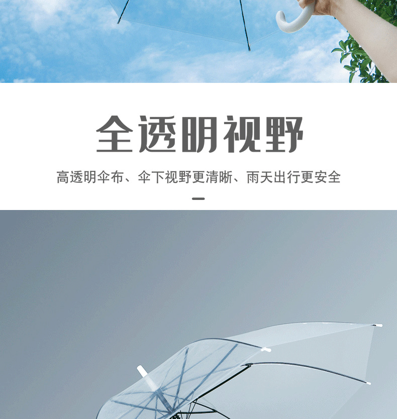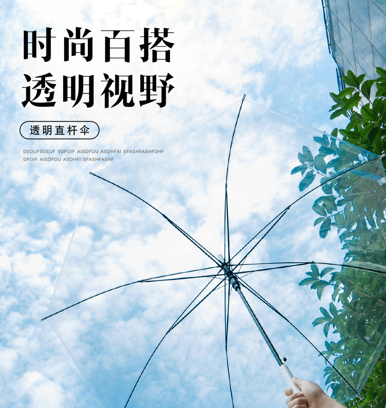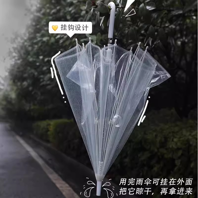 투명한 우산 도매 8 뼈 원 버튼 자동 스트레이트 로드 우산 창조적 인 간단한 광고 선물 인쇄 가능한 로고스토어 가기