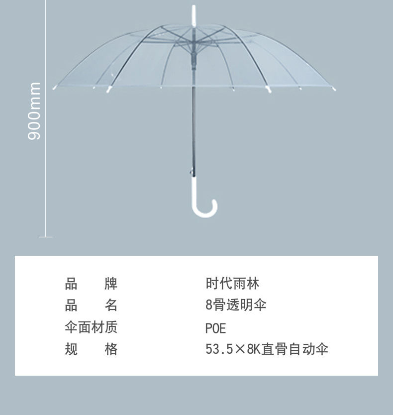 투명한 우산 도매 8 뼈 원 버튼 자동 스트레이트 로드 우산 창조적 인 간단한 광고 선물 인쇄 가능한 로고