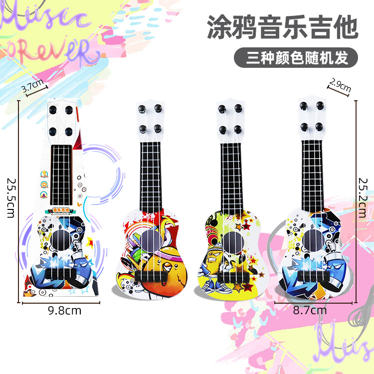 무료 배송 공장 도매 어린이 낙서 미니 기타 우쿨렐레 소년과 소녀는 악기 장난감을 재생할 수 있습니다.