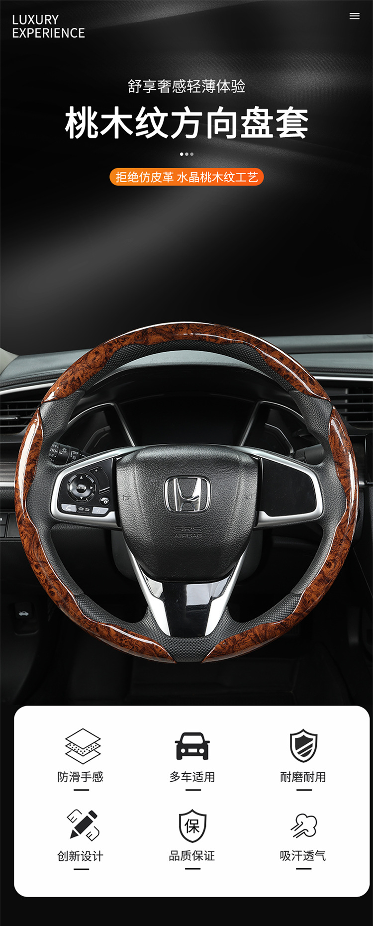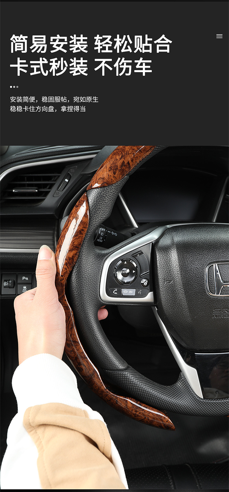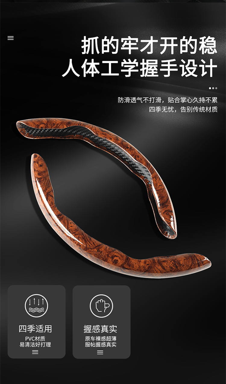 Four Seasons Universal Anti-Slip Internet Celebrum 하프 세트 카드 타입 스티어링 휠 커버 커버 핸들 피치 우드 패턴 스티어링 휠 커버스토어 가기