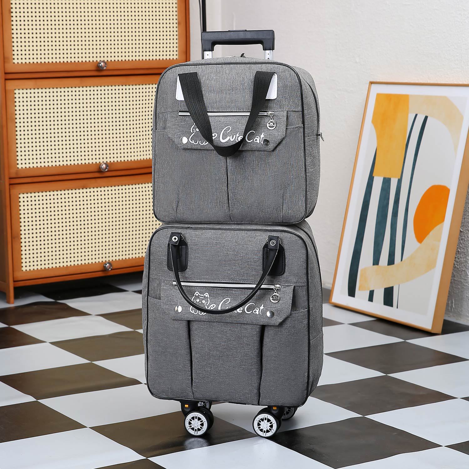 • 세트 그레이, (트롤리 가방 핸드백, 2 가방)