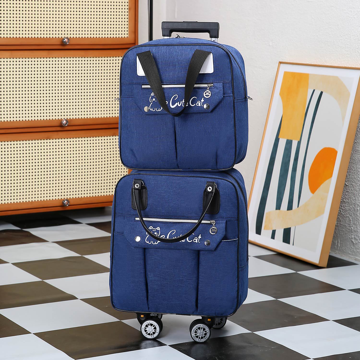 • 세트 다크 블루, (트롤리 가방 핸드백, 2 가방)