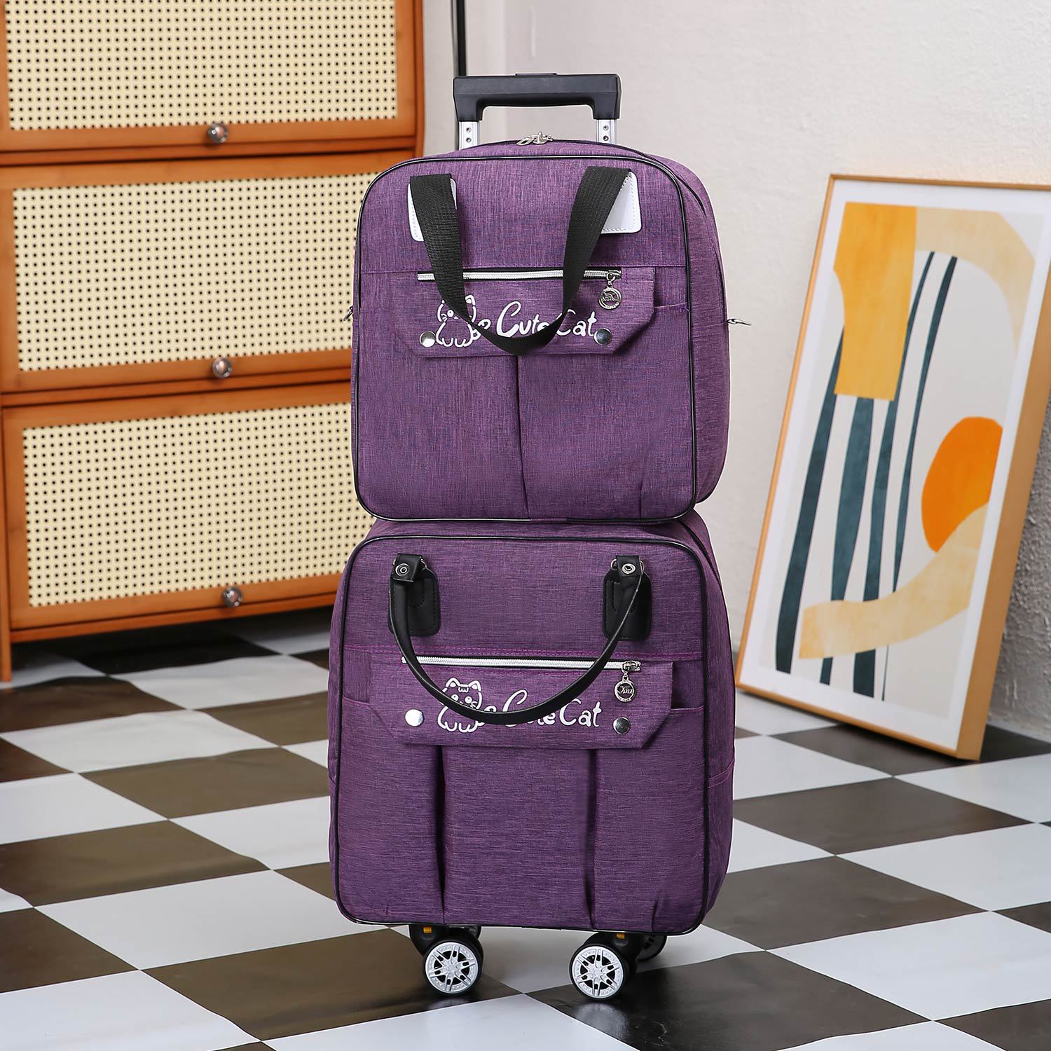• 세트 보라색, (트롤리 가방 핸드백, 2 가방)