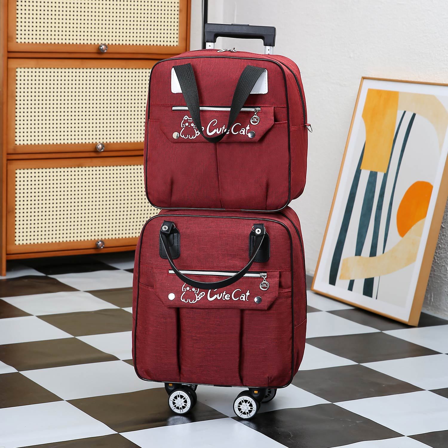 • 세트 버건디, (트롤리 가방 핸드백, 2 가방)