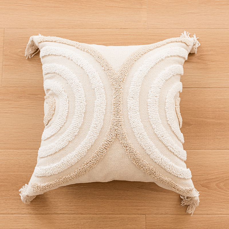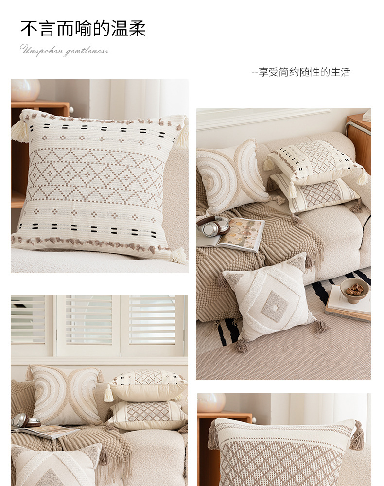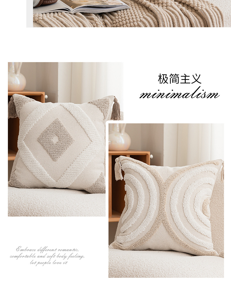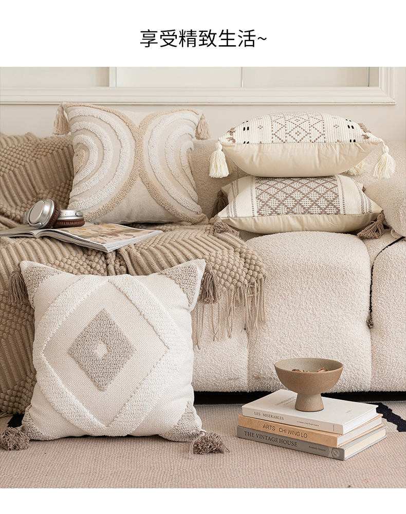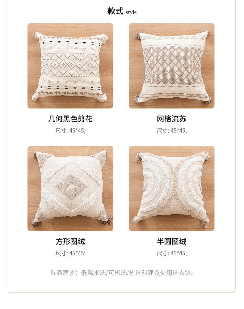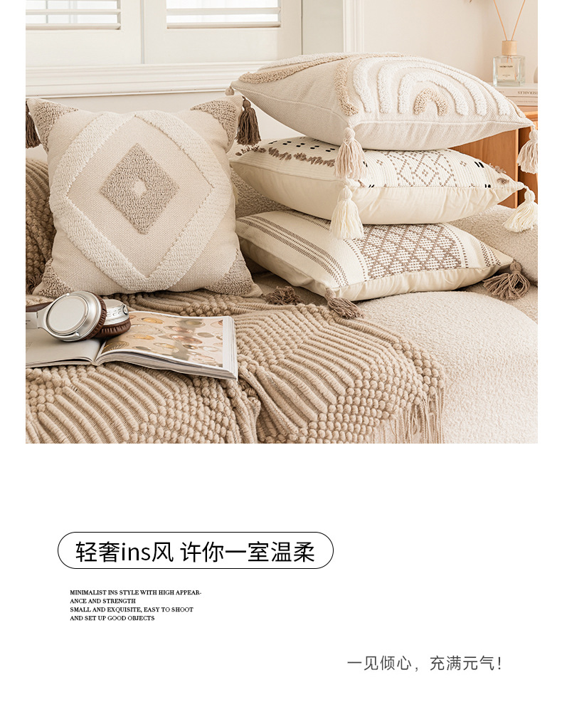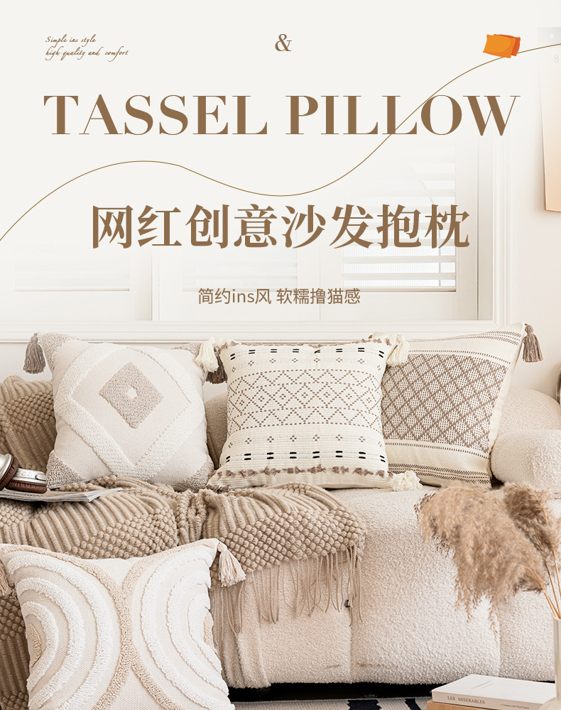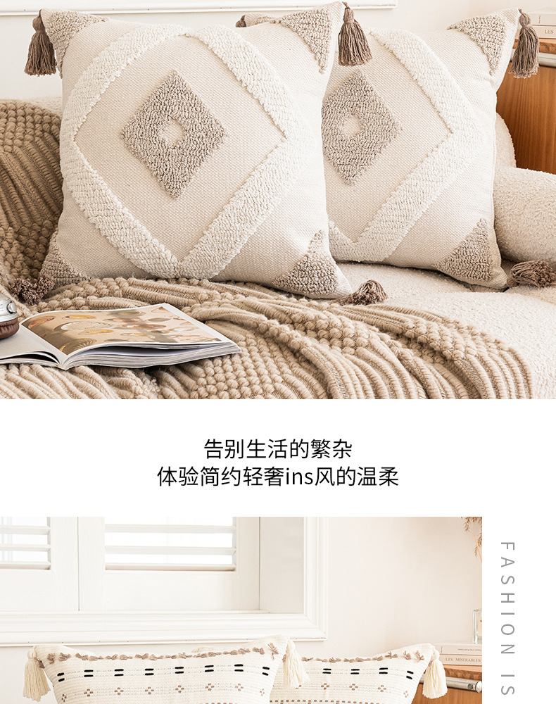 [와우 커스터마이징] 노르딕 인스 베개 심플 소파 태슬 쿠션 체크무늬 터프티드 베개 커버 베개심