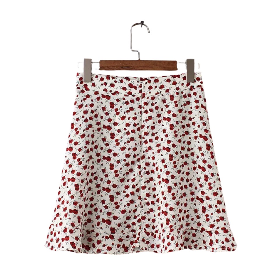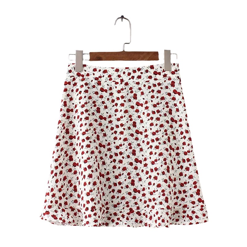 유럽과 미국 스타일의 쾌활한 flounce 헴 미니 플로럴 스커트 짧은 스커트 하이 웨이스트 섹시 A 라인 스커트 여름 스커트