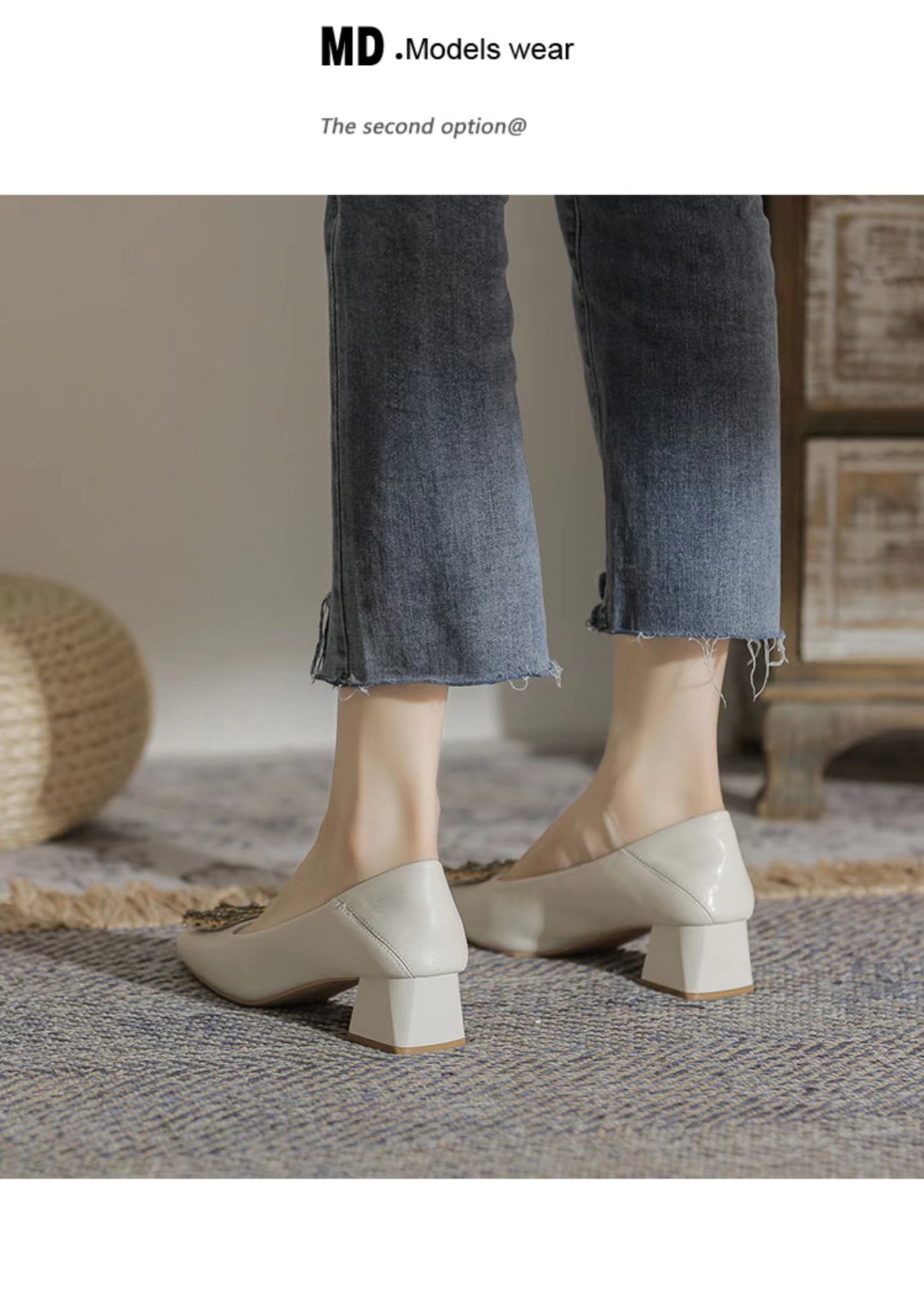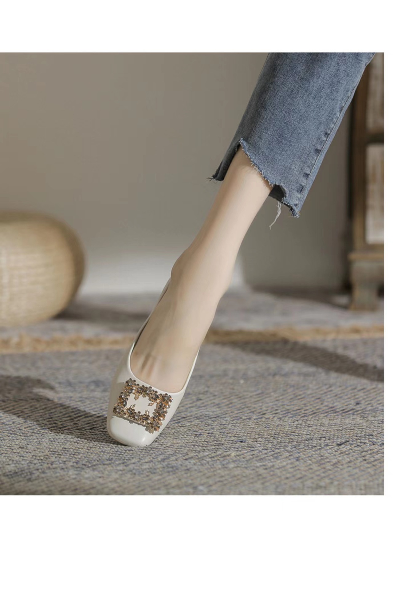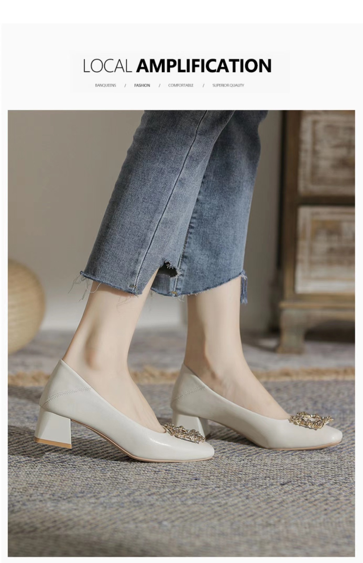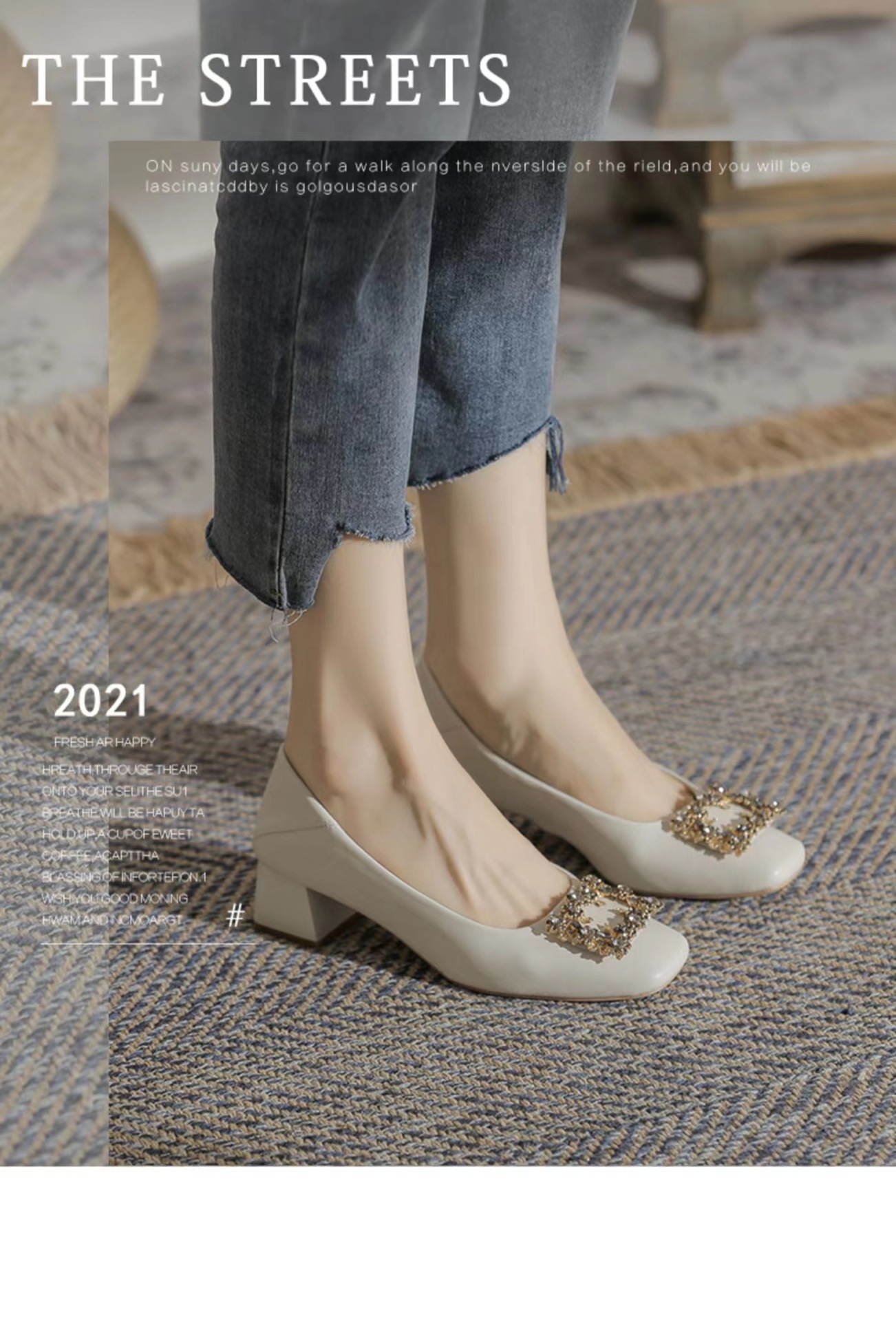 정품 가죽 두꺼운 힐 신발 여성의 2024 새로운 라인스톤 미드 힐 얕은 엄마 신발 프랑스 전문 하이힐 41스토어 가기