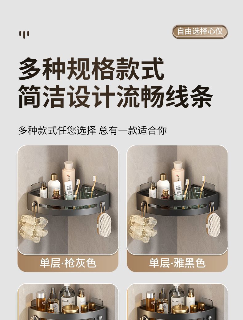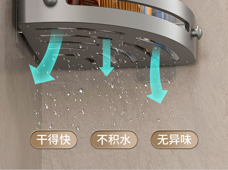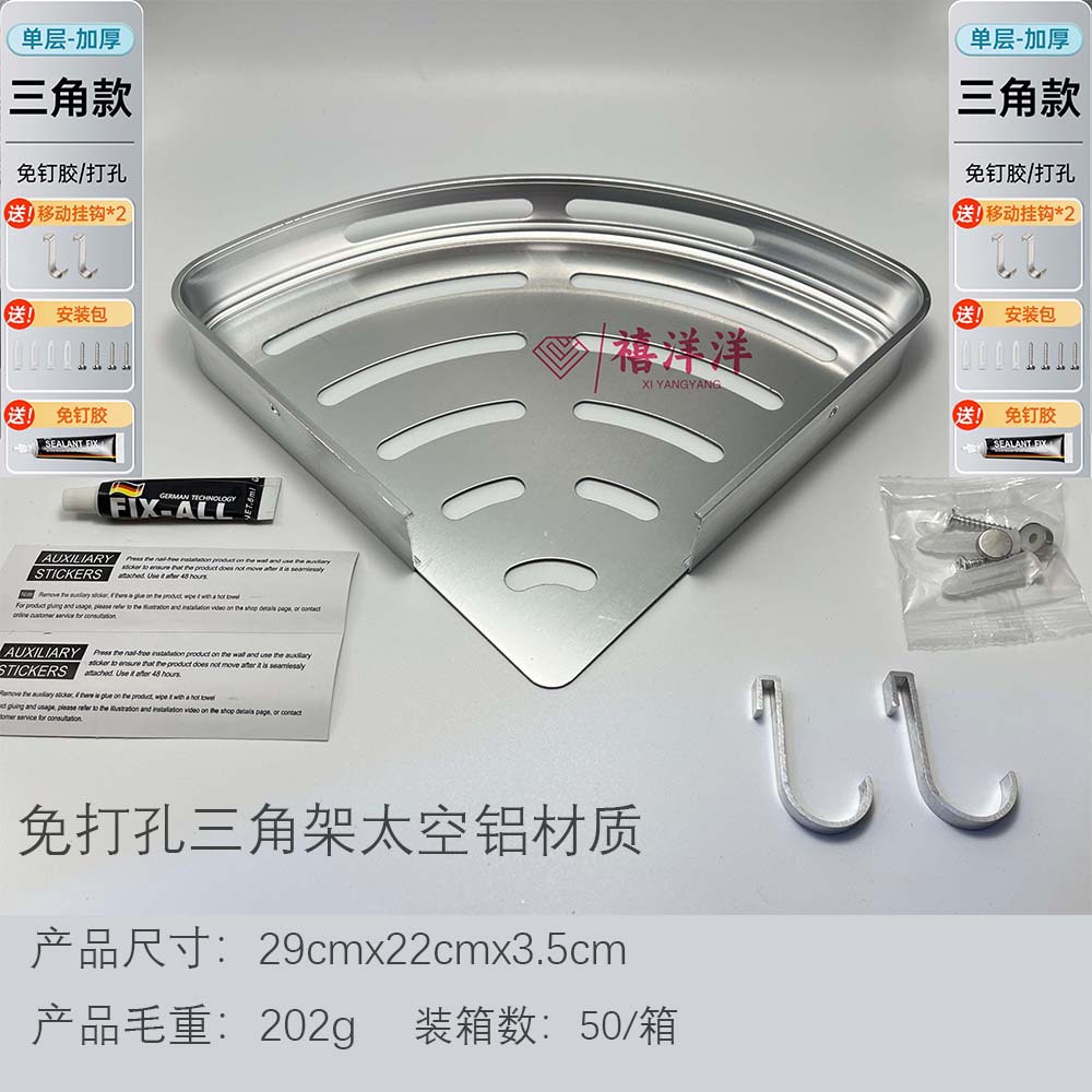 가벼운 럭셔리 욕실 펀치 무료 삼각형 저장 랙 국경 흡입 컵 삼각대 가정용 욕실 보관 랙 헤어