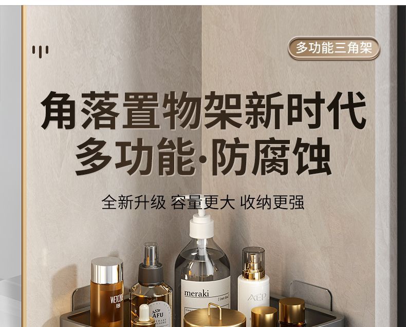 가벼운 럭셔리 욕실 펀치 무료 삼각형 저장 랙 국경 흡입 컵 삼각대 가정용 욕실 보관 랙 헤어스토어 가기
