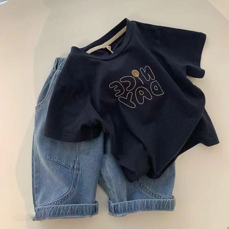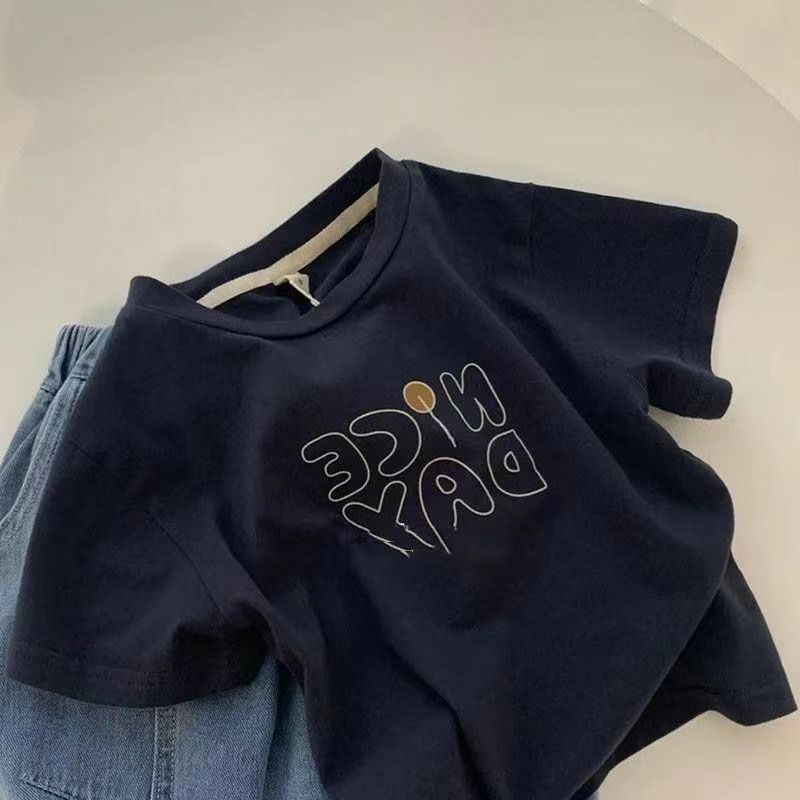2024 년 여름 코리안 스타일 소년 아기 반소매 어린이 캐주얼 네이비 티셔츠 올 매치 반소매 소년 여름 원피스