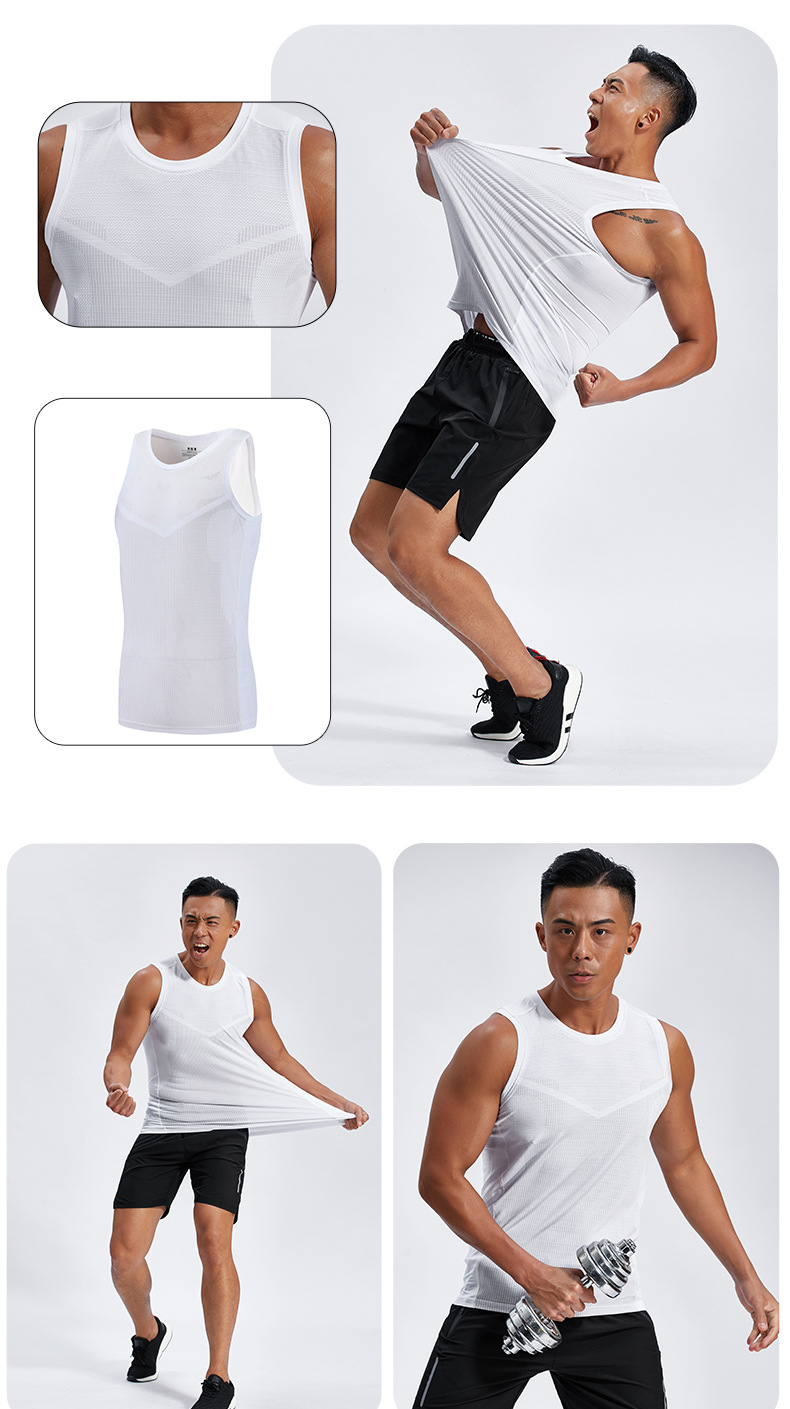 저지 조끼 남자 반팔 티셔츠 조끼 아이스 실크 마라톤 조끼 스포츠 조끼 남자 빠른 건조 육상 훈련 의류