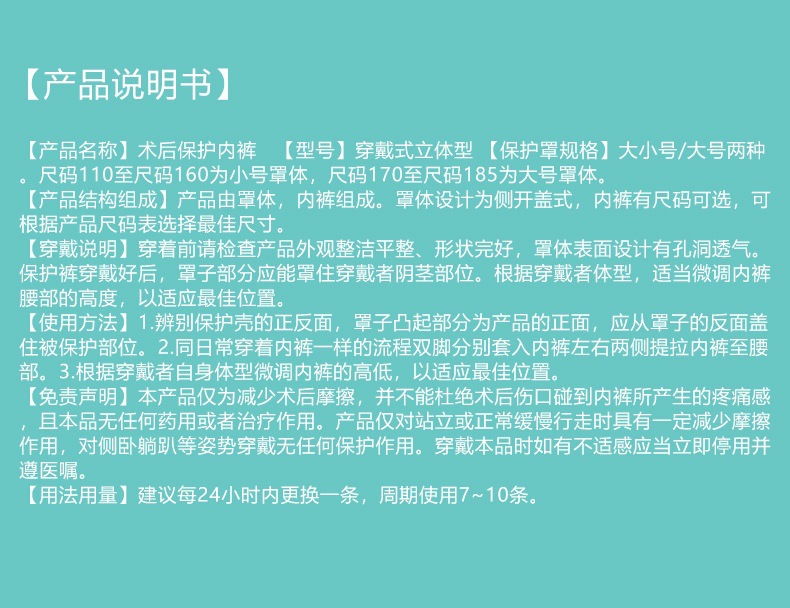 【拍前须知】本链接所售内裤花色为随机色,包含但不仅限于描述中展示的这些花色(印花款与纯色款均有)介意勿拍。内裤包装拆封以后不支持退货!本品非医用产品,无任何治疗效果。仅为减轻术后摩擦带来的疼痛感,并不能杜绝摩擦!不能杜绝摩擦!不能杜绝摩擦!下单即为同意本说明。