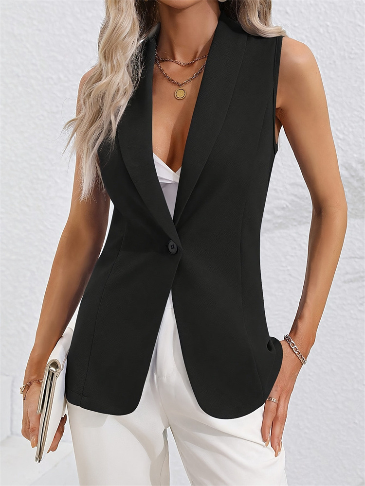 2024 새로운 우아한 단색 과일 칼라 세트 조끼 여성 올 매치 타이트 허리 슬림 핏 스트레치 민소매 자켓스토어 가기
