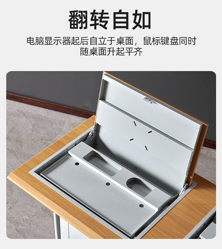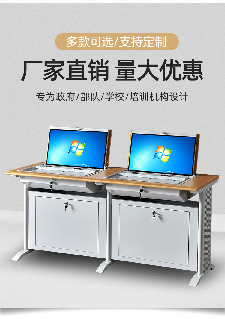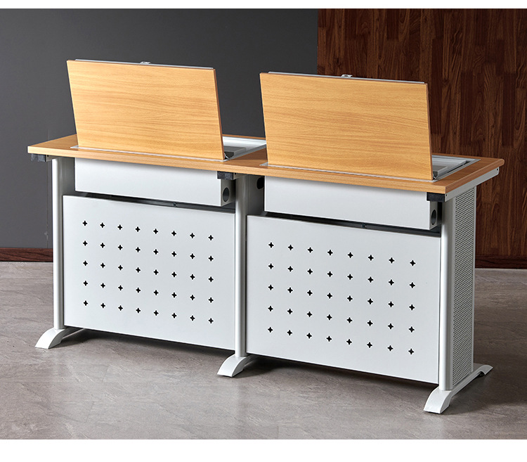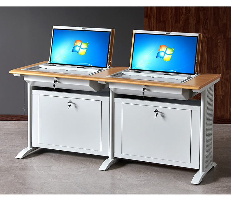 플립 컴퓨터 책상 모니터 숨겨진 학생 책상 학교 멀티미디어 전자 교실 컴퓨터 실 강철 나무 조합 훈련 테이블스토어 가기