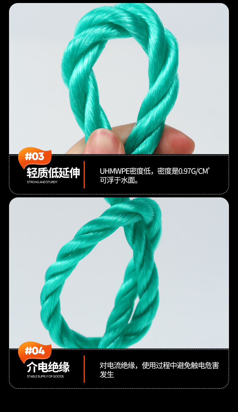 폴리에틸렌 로프, 신소재, 해양 양식용 트위스트 로프, 해양 로프, 트럭 견인 로프, 바인딩 로프, 고마력 내마모성 로프