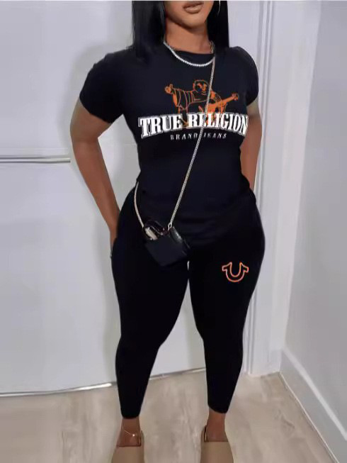 N8000T92 유럽 및 미국 여성 의류 2024 국경 봄과 여름 여성 인쇄 맞춤형 레저 투피스 세트스토어 가기