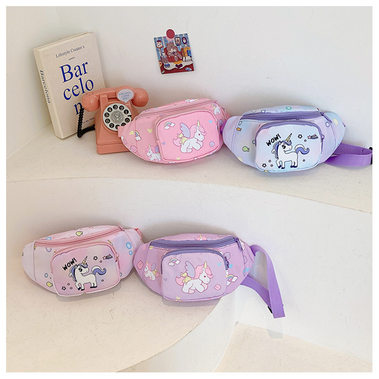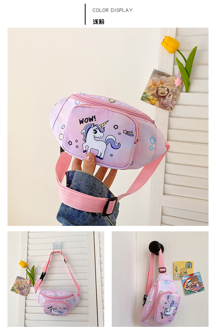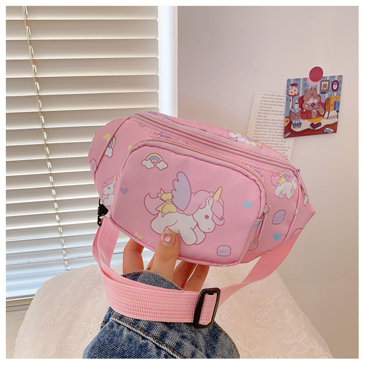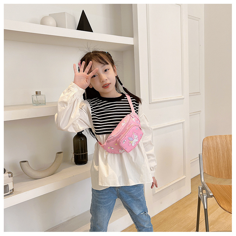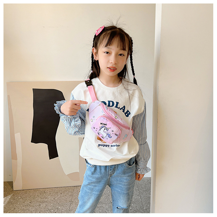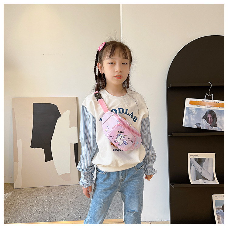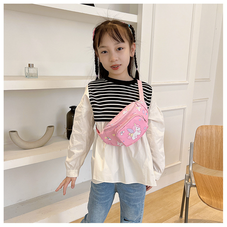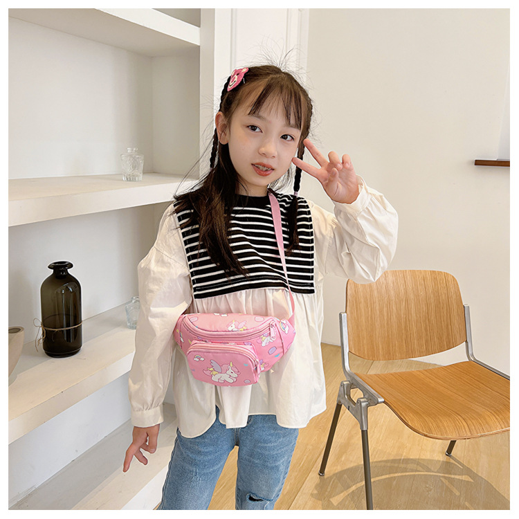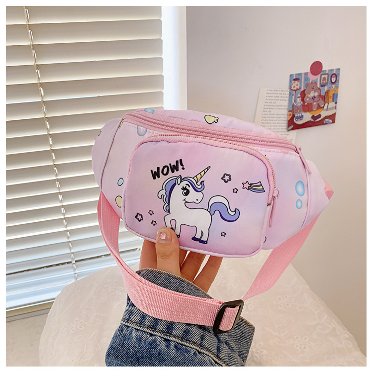 새로운 어린이 가방 귀여운 소녀 가방 유니콘 만화 허리 가방 경량 패션 여행 크로스 바디 가방 소년 소녀스토어 가기