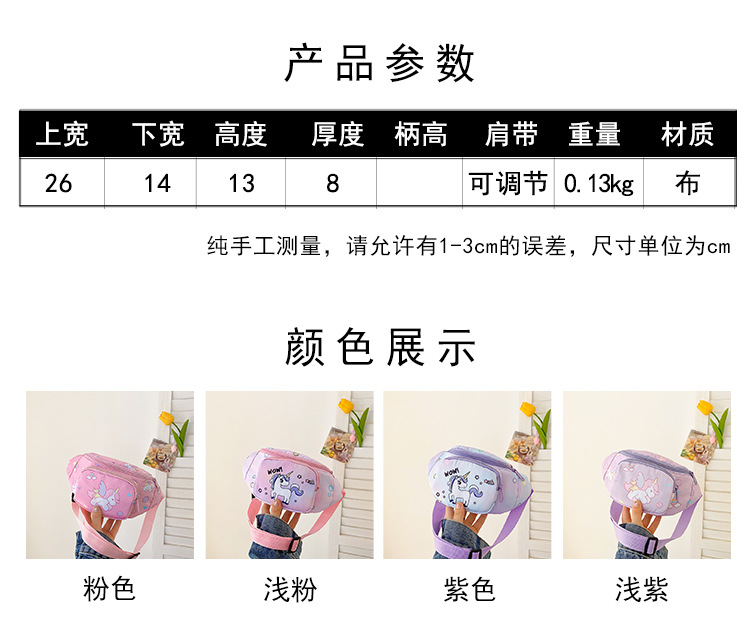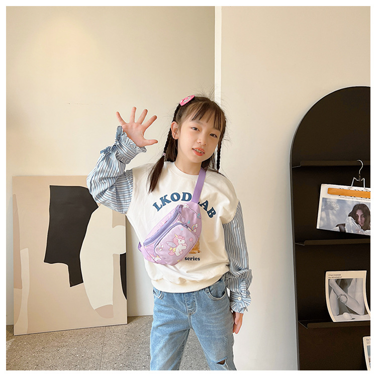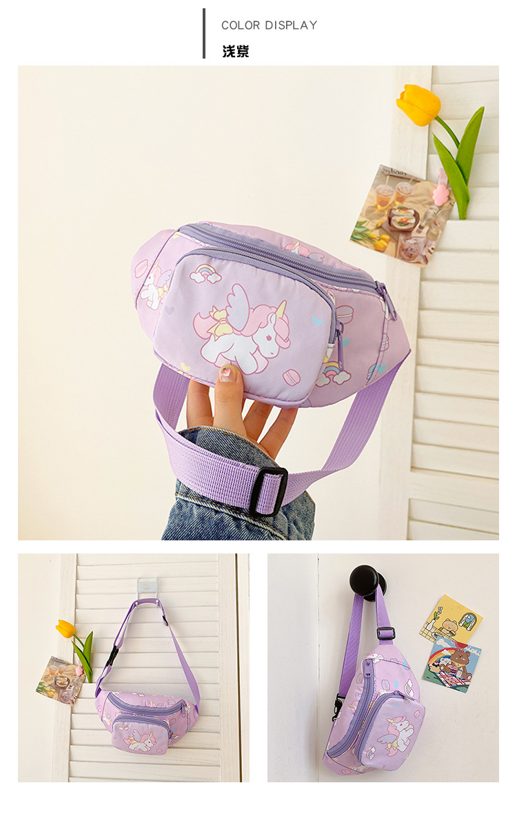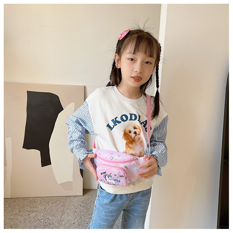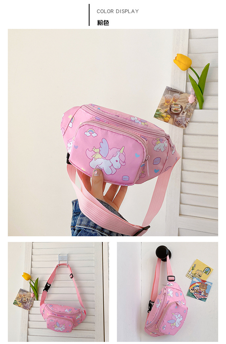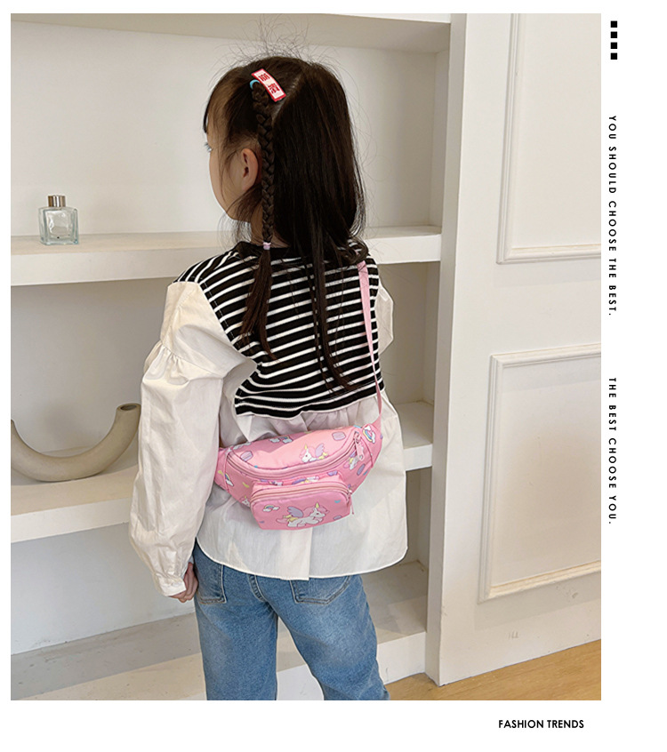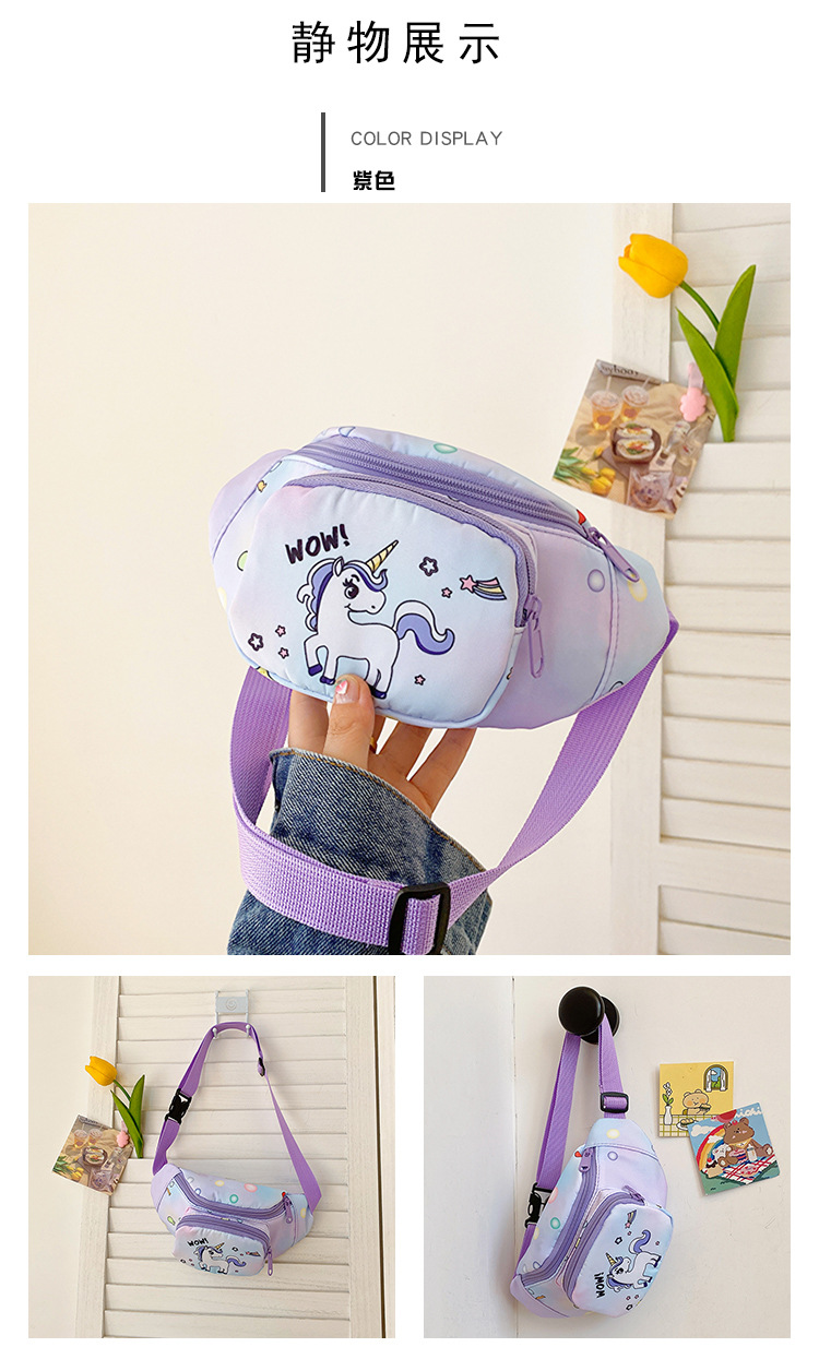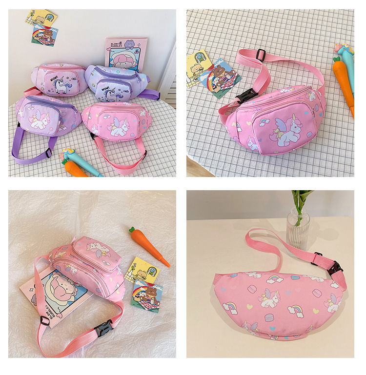 새로운 어린이 가방 귀여운 소녀 가방 유니콘 만화 허리 가방 경량 패션 여행 크로스 바디 가방 소년 소녀스토어 가기