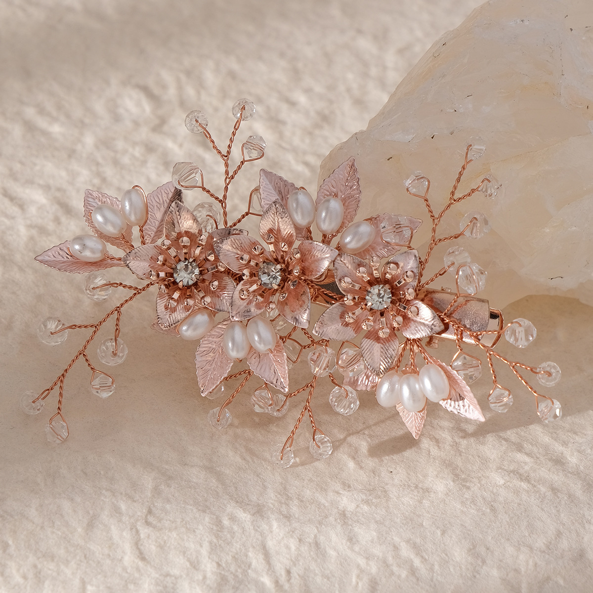 국경 핫 신부 액세서리 헤드폰 수제 진주 금속 꽃 머리핀 여름 모리 고급 덕빌 클립