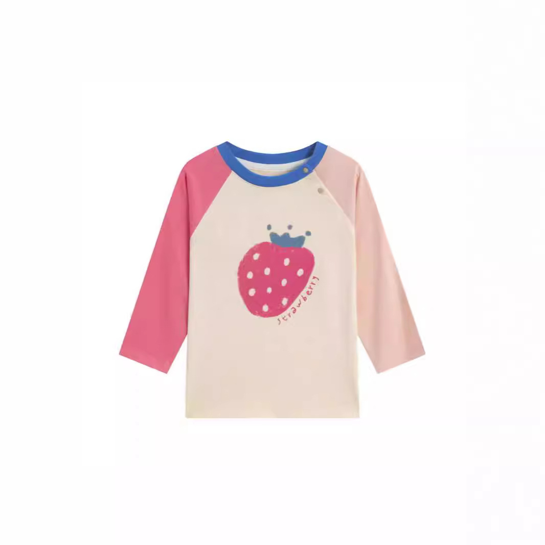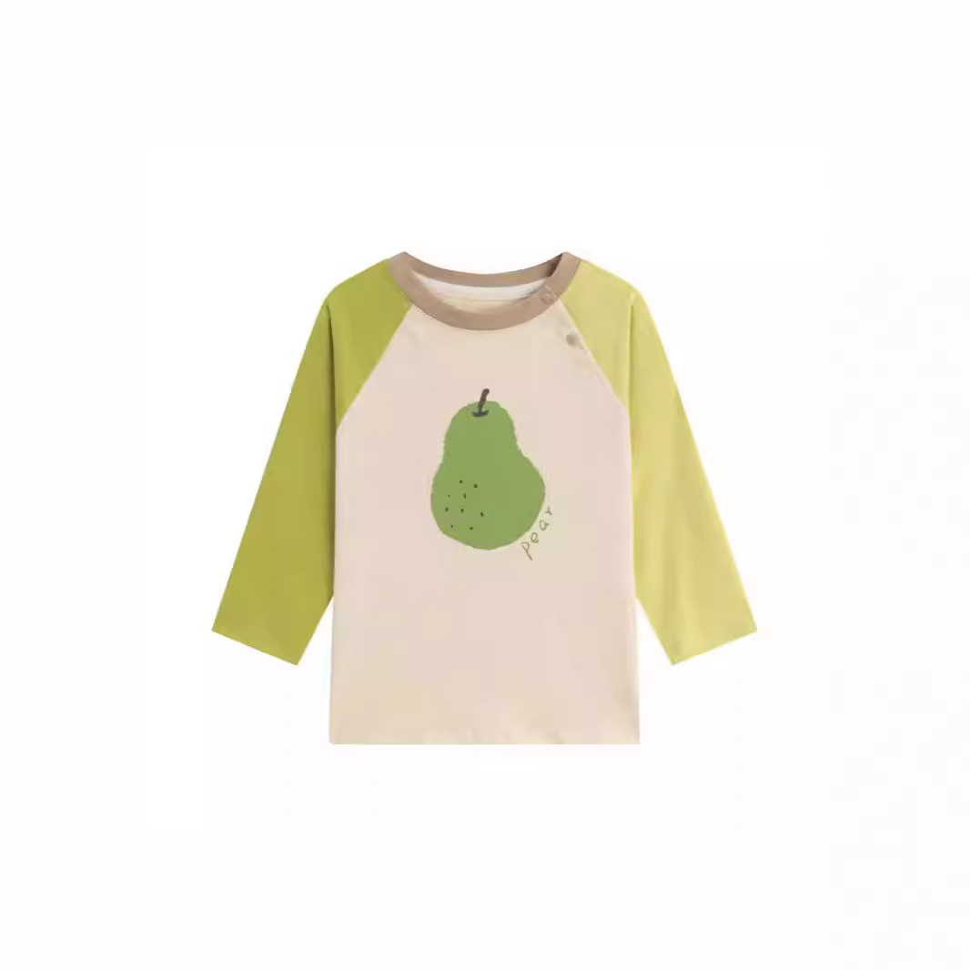 [5A 항균] 어린이 과일 대비 색상 기본 셔츠 가을 아기 귀여운 부드러운 편안한 캐주얼 티셔츠 타이드 24C03