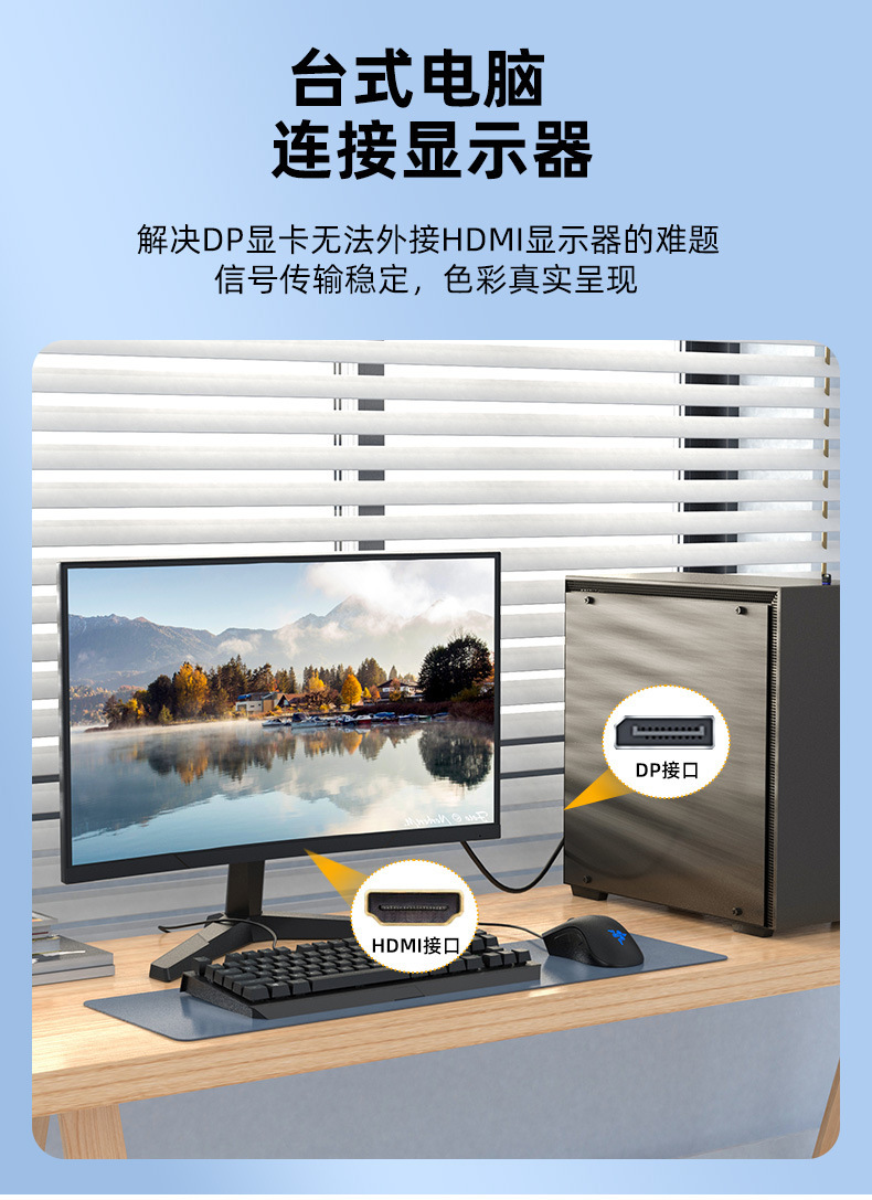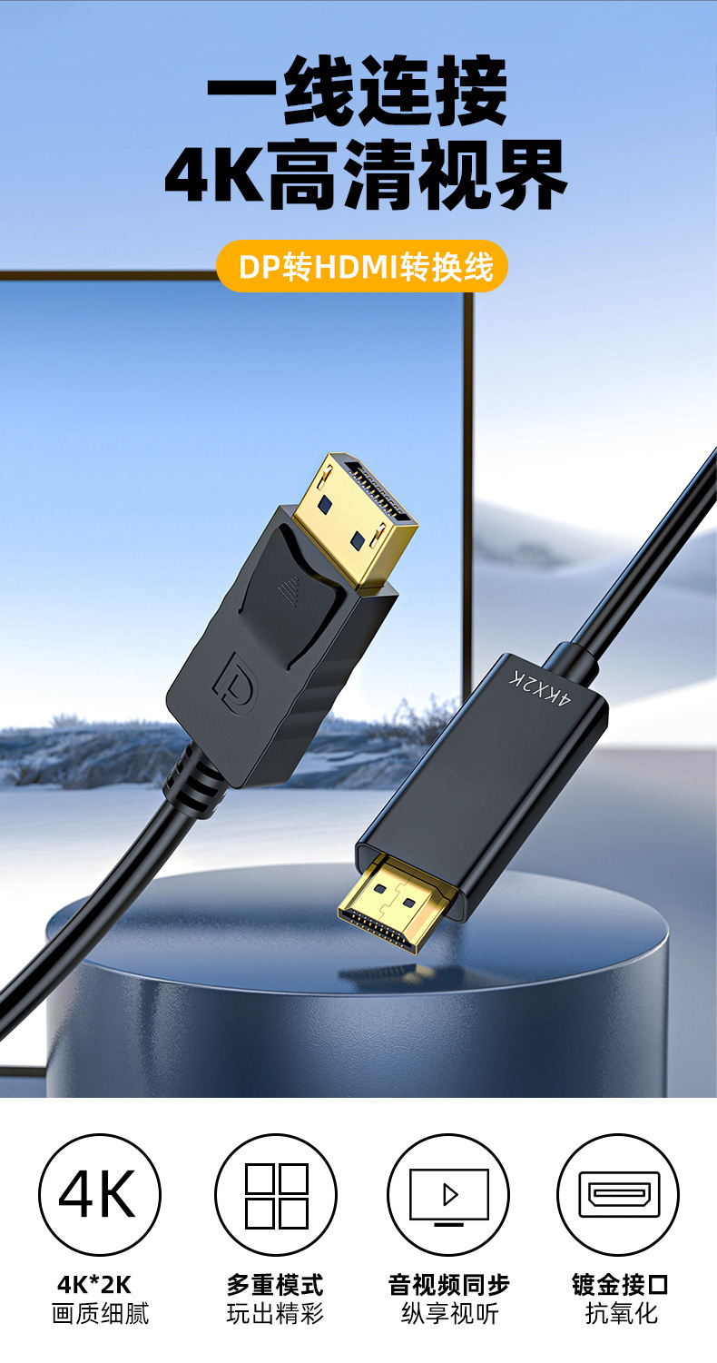 DP 转 HDMI 4K 高清转换线 详情页文案