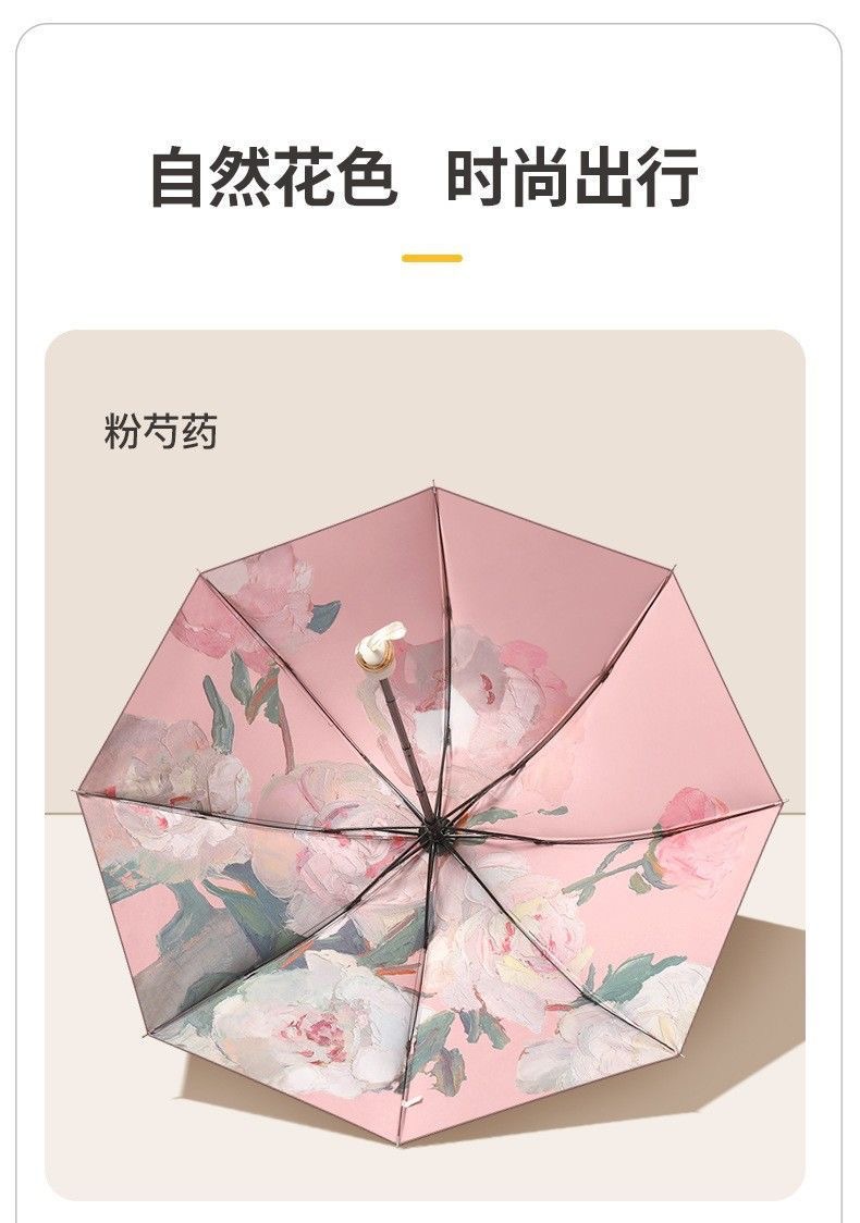 3 배 더블 레이어 우산 양면 인쇄 더블 레이어 블랙 고무 태양 보호 태양 우산 수동 접기 여성용 태양 우산 작고 휴대용