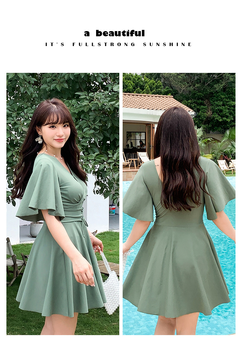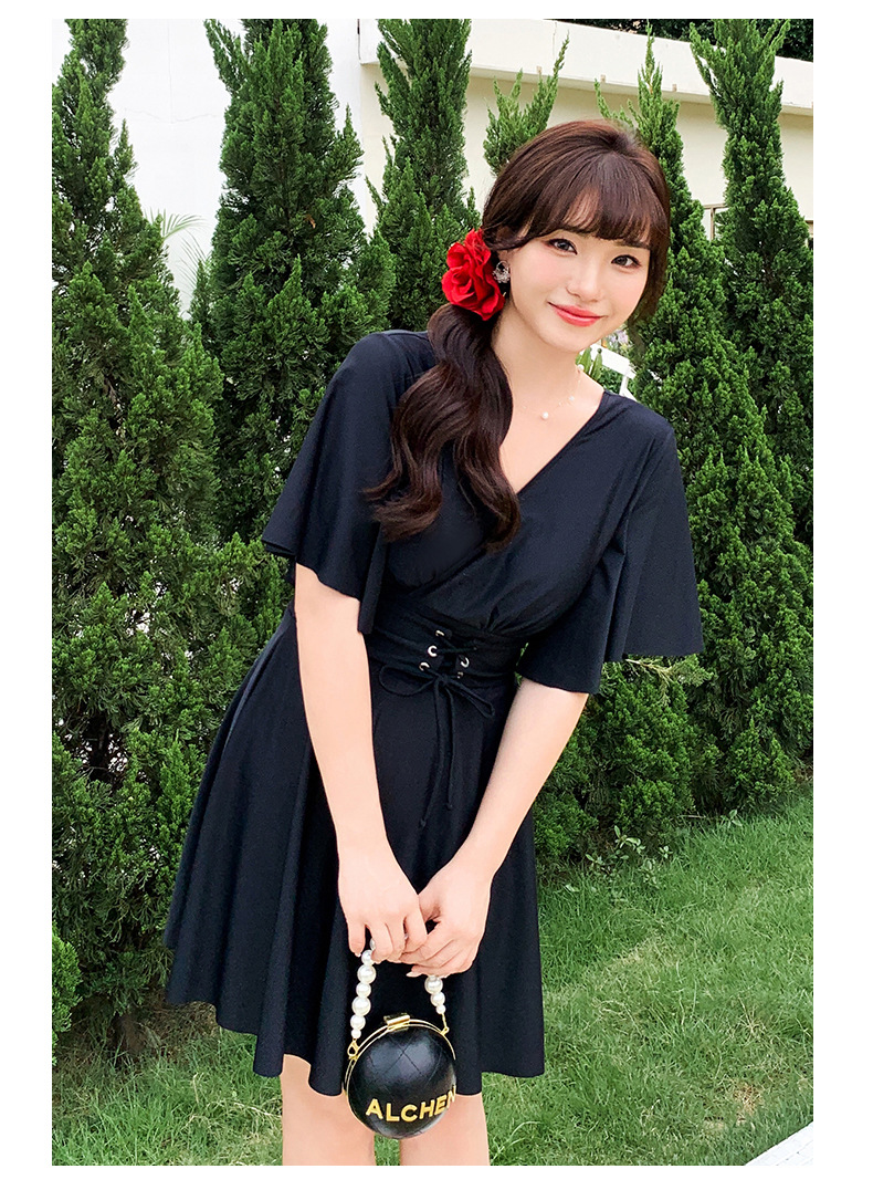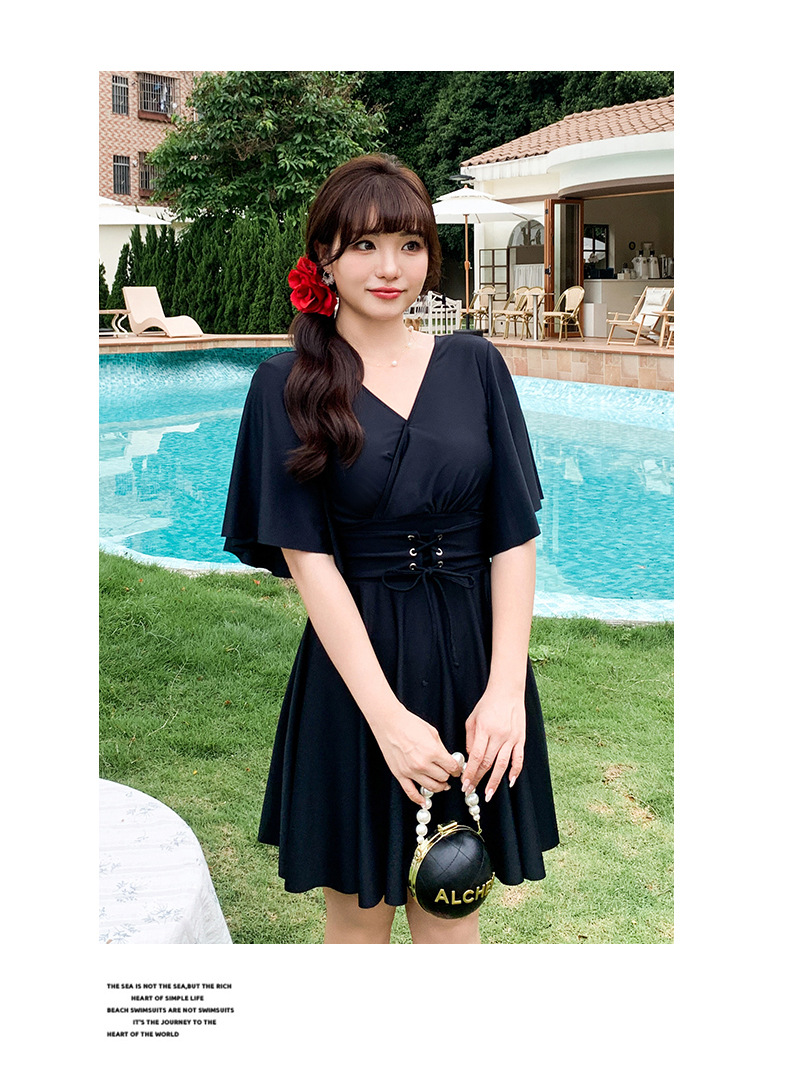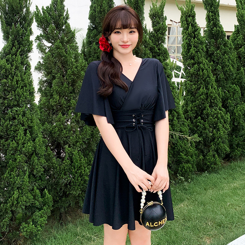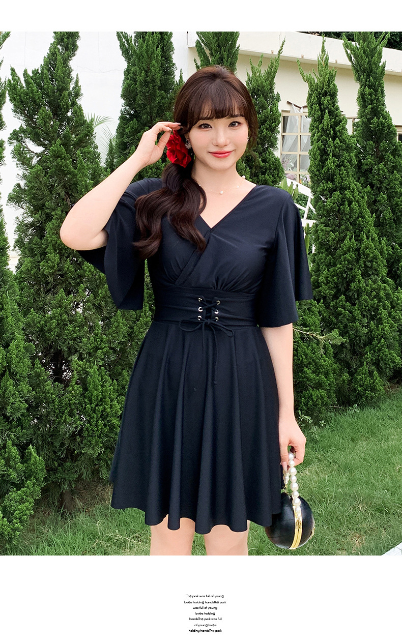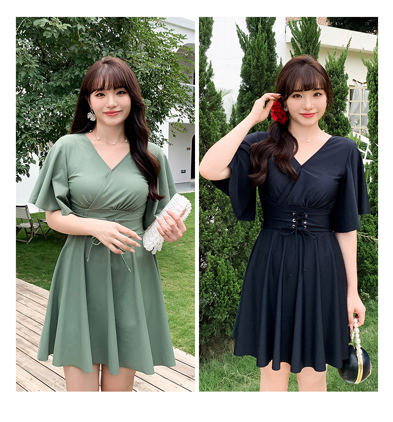 여분의 지방 크기의 여성 원피스 스커트 수영복 mm200 kg 배꼽 덮인 고기 슬림 보수적 인 온천 수영복 300스토어 가기