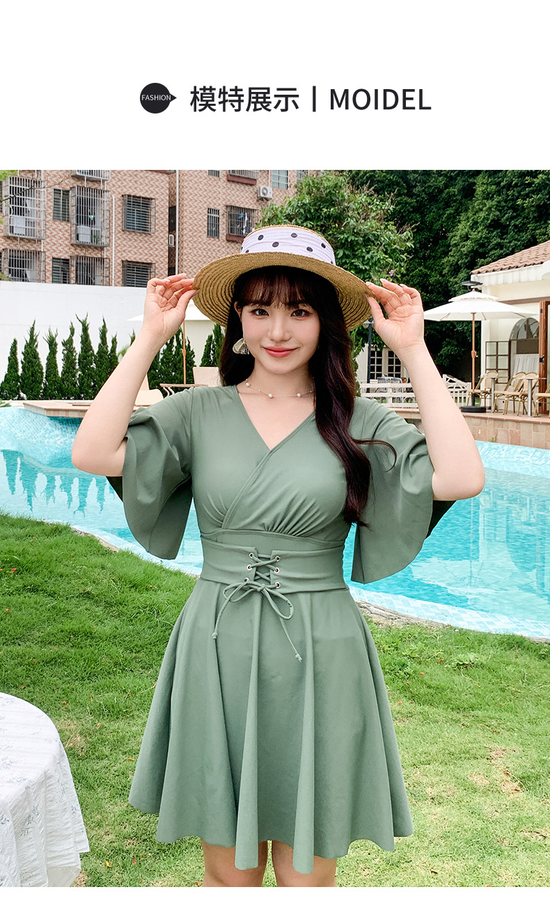 여분의 지방 크기의 여성 원피스 스커트 수영복 mm200 kg 배꼽 덮인 고기 슬림 보수적 인 온천 수영복 300