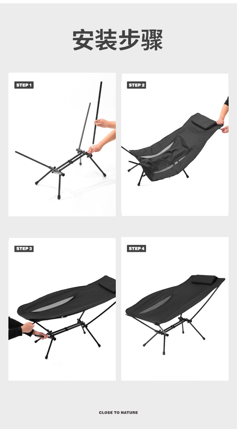 户外休闲躺椅铝合金户外折叠躺椅便携轻巧露营烧烤徒步钓鱼折叠椅