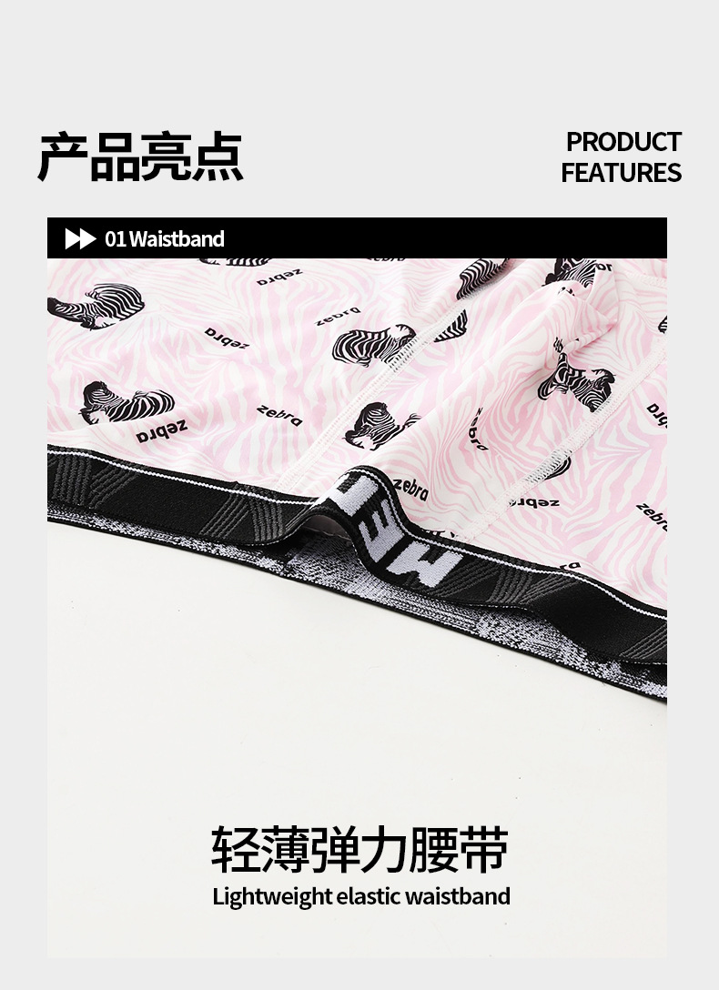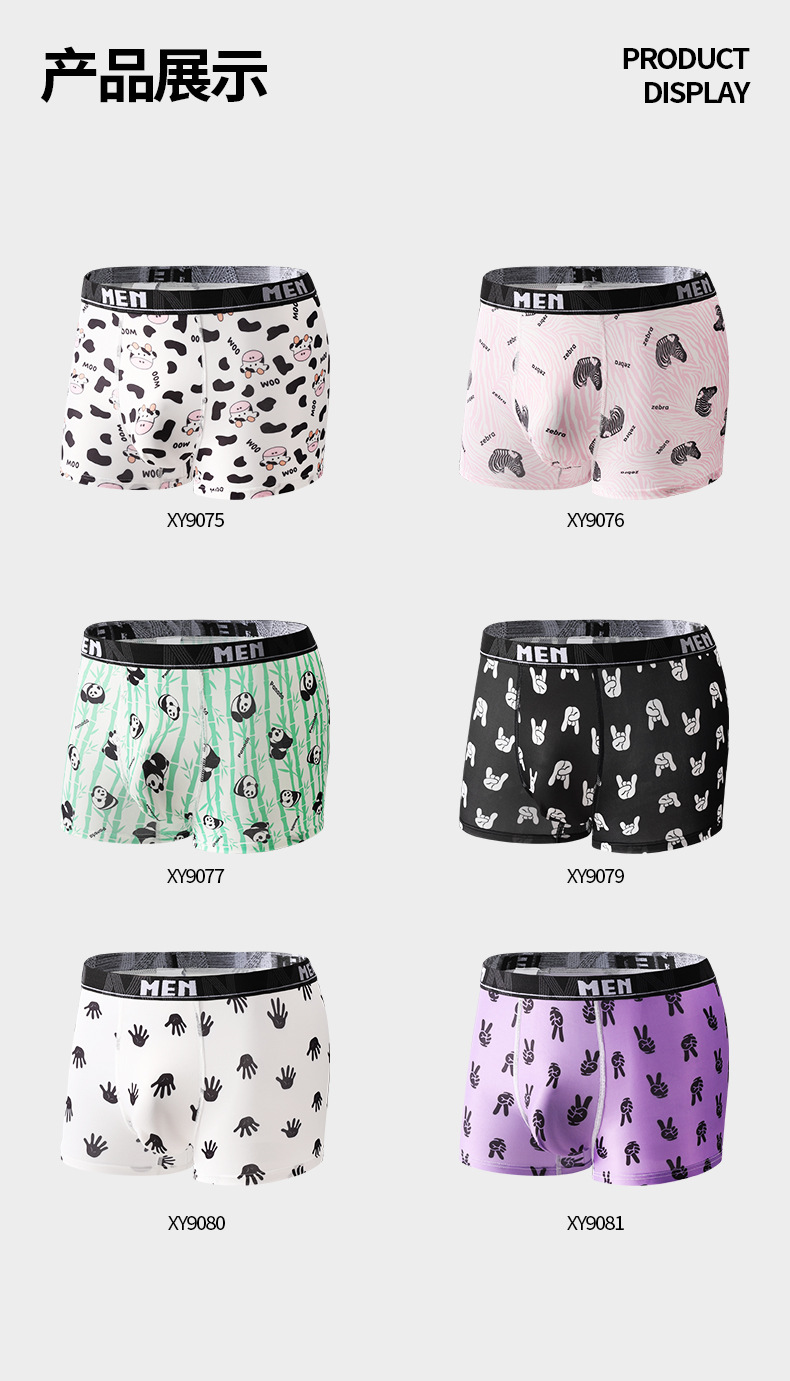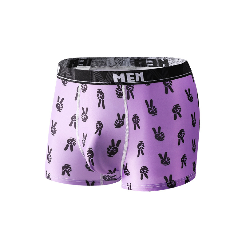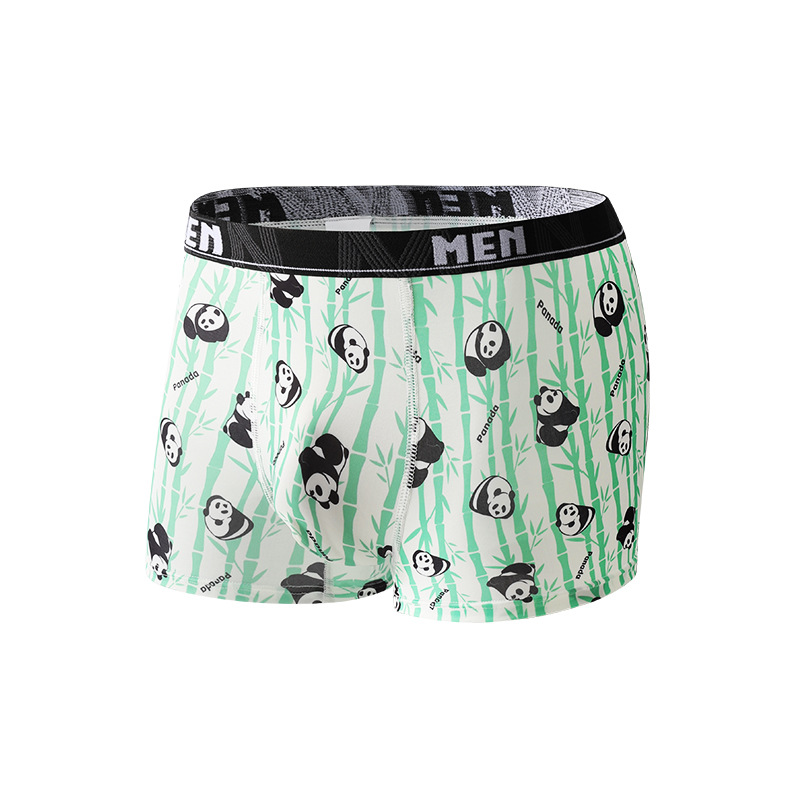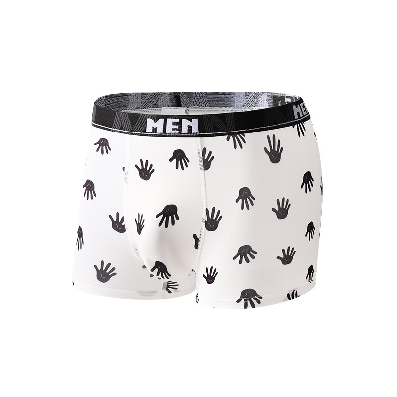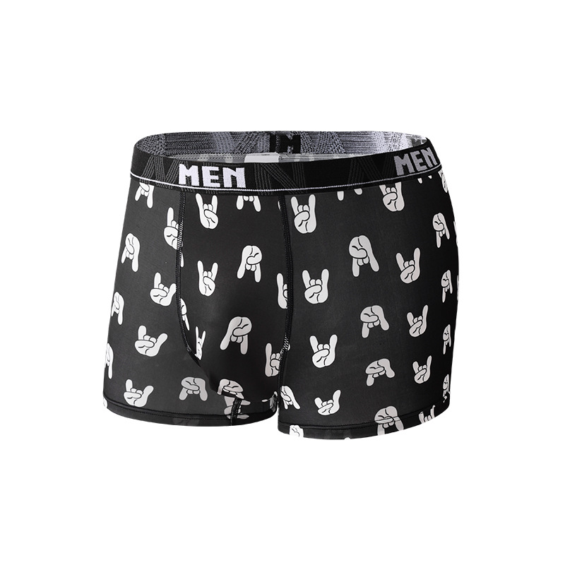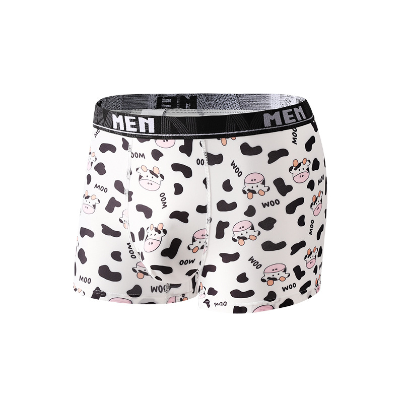 남성용 트렌디 프린트 아이스 실크 항균 통기성 스포츠 중간 허리 청소년 남성용 사각팬티 해외 직구