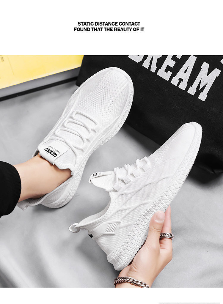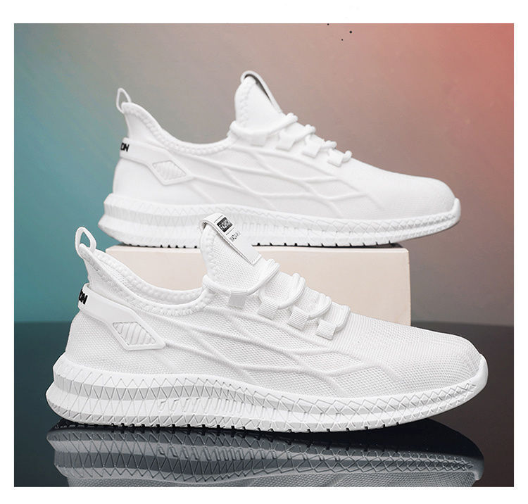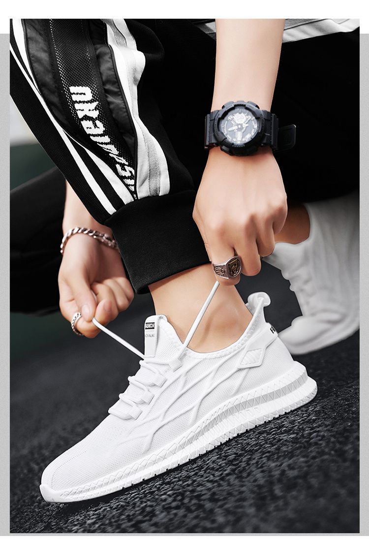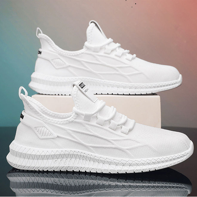 남자 운동화 여름 새로운 통기성 비행 짠 메쉬 신발 모든 경기 캐주얼 남성 신발 야외 경량 흰색 신발