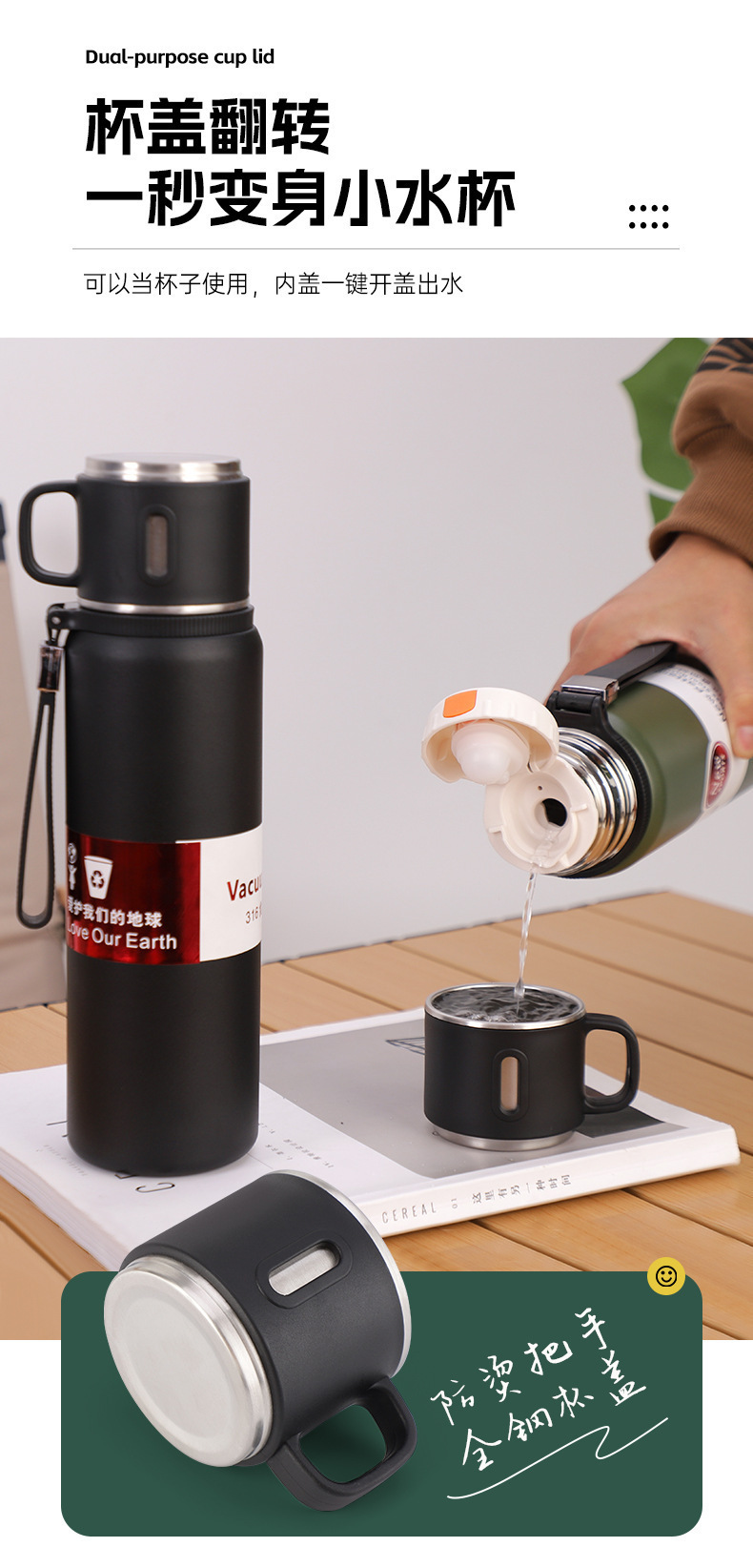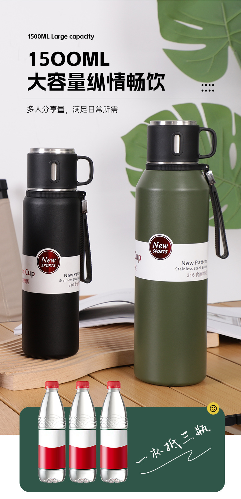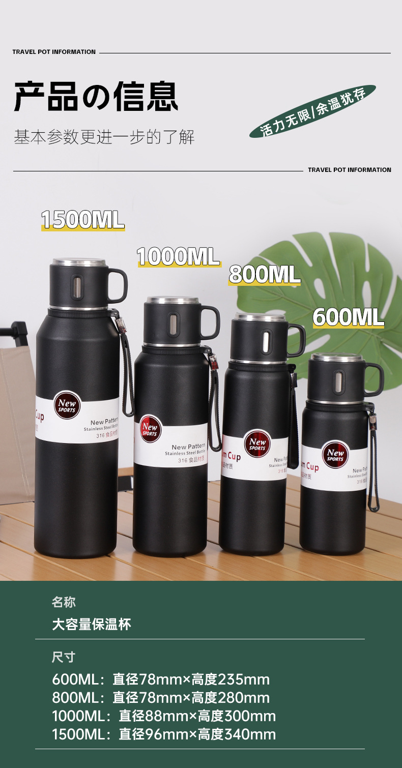 316 스테인레스 스틸 보온병 머그잔 남성 대용량 2024 새로운 휴대용 스튜 답답한 거품 컵 컵 정품스토어 가기