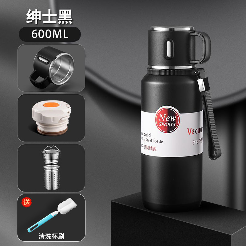 • [업그레이드된 316 모델] 옵시디언 블랙 600ml (차와 물 분리) 프리 컵 브러쉬