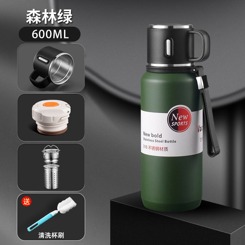 • [316 모델 업그레이드] 밀리터리 그린 600ml (차와 물 분리) 프리 컵 브러쉬