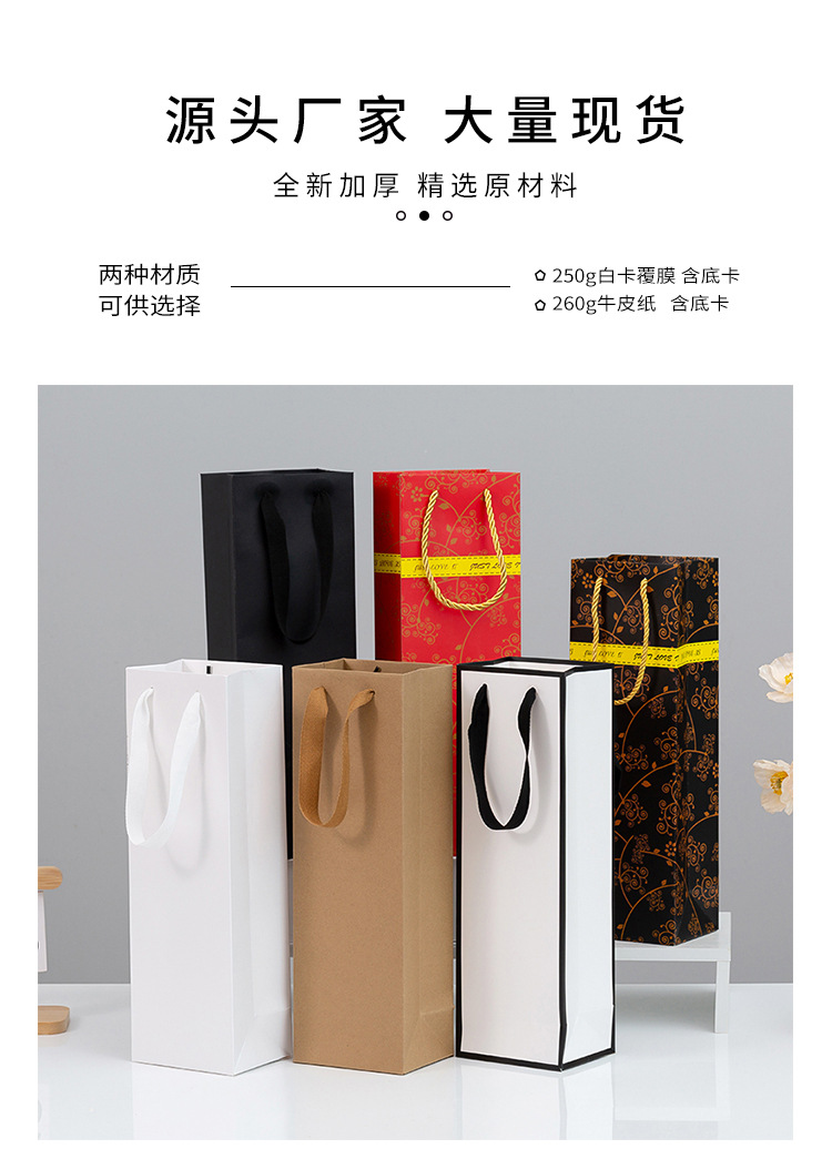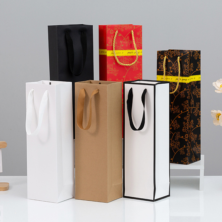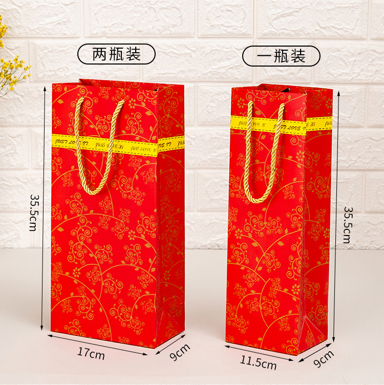 공장 도매 더블 싱글 레드 와인 토트 백 컬러 박스 두꺼운 레드 와인 선물 가방 재고 포장 종이 가방