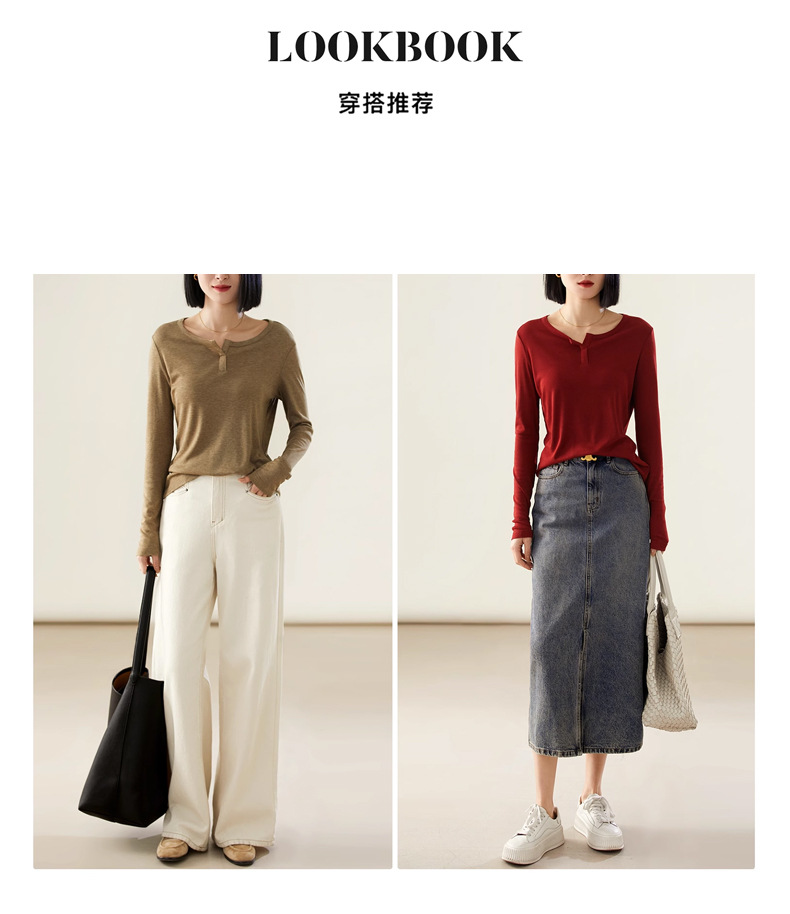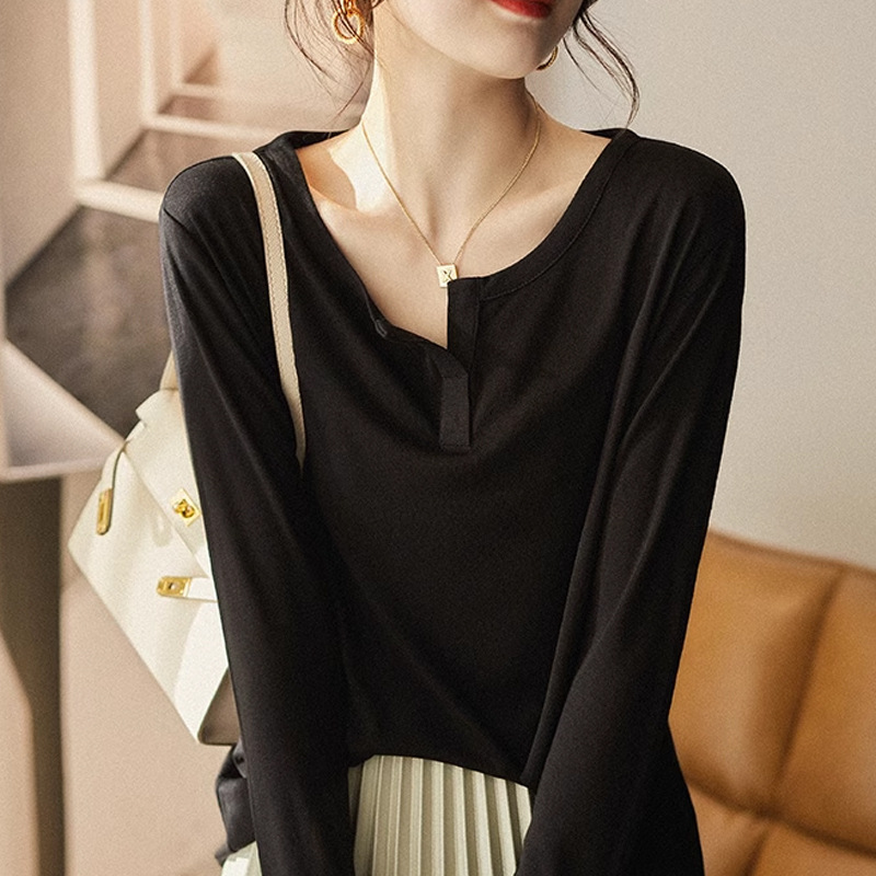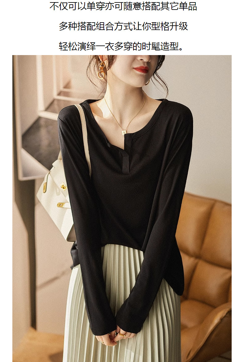 가을 신상 무지 패션 베이직 긴팔 이너웨어 여성용 루즈핏 슬림핏 상의스토어 가기