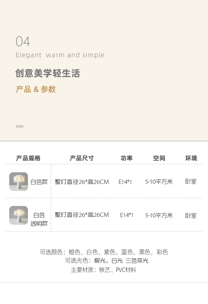 • 충전 색상 [26CM] 중립 빛 E14 광원 * 1 제공