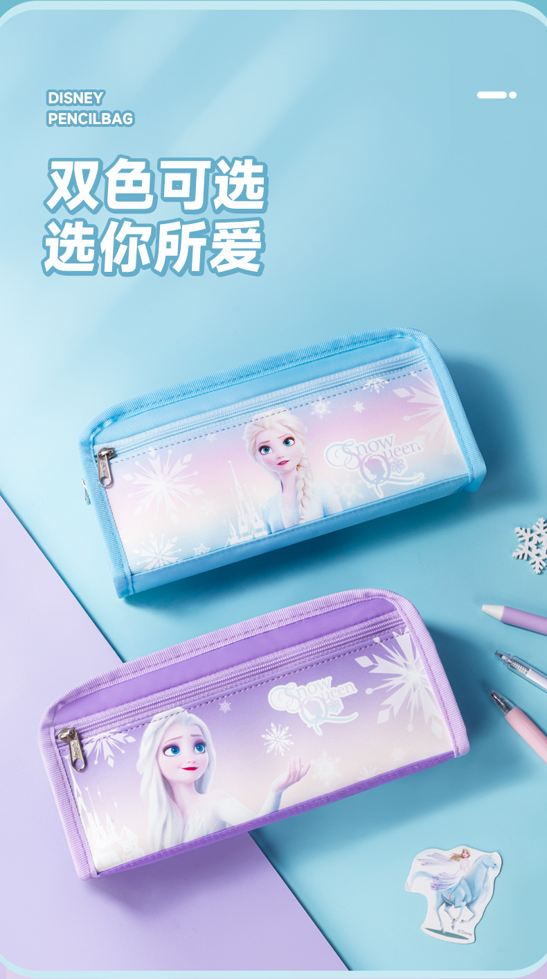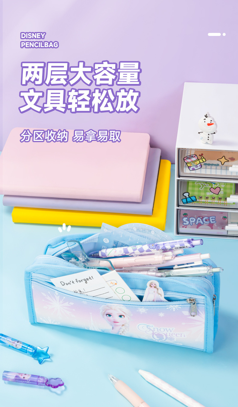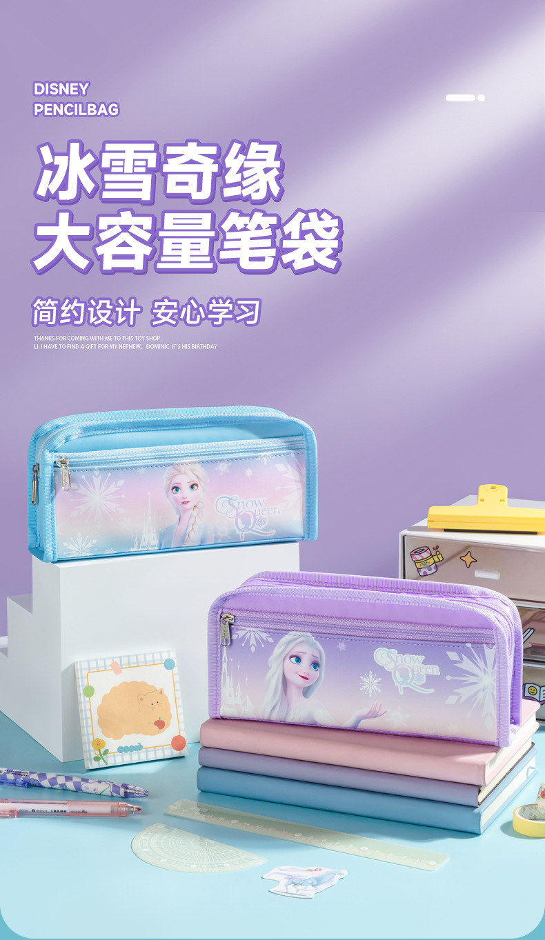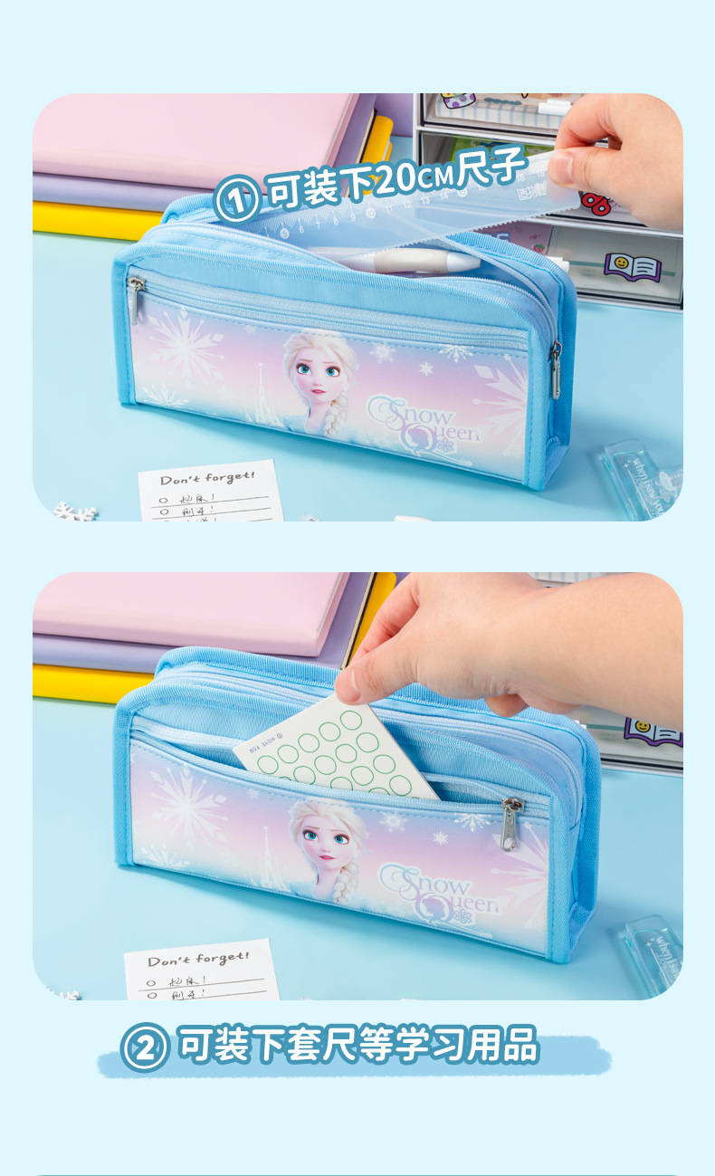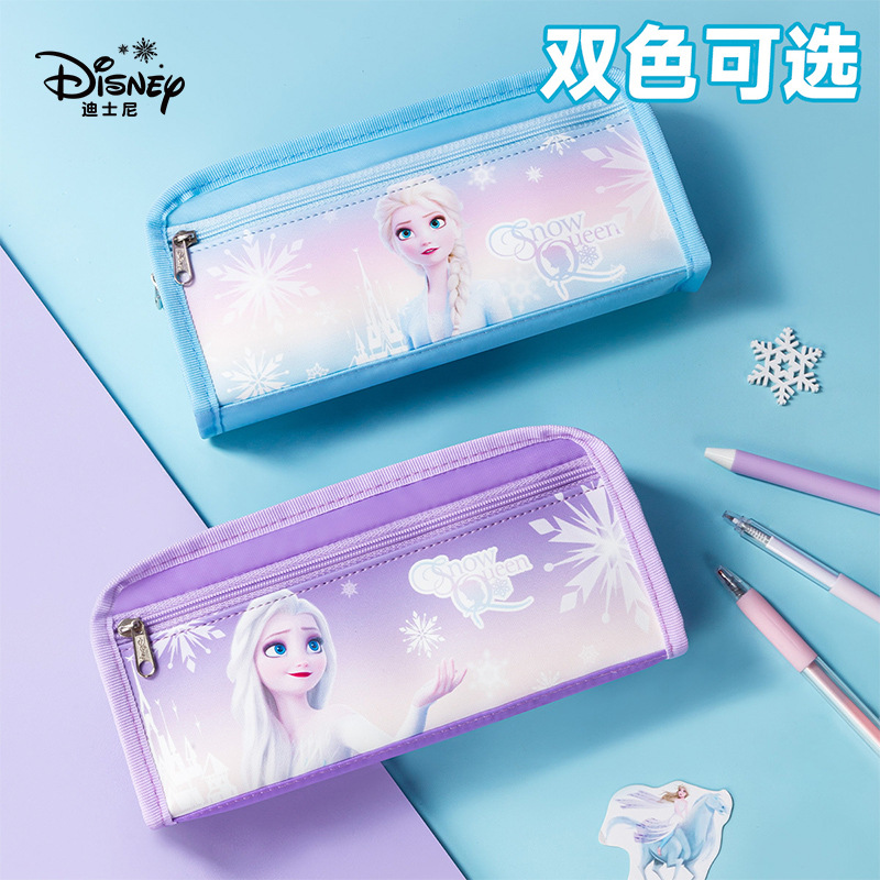디즈니 만화 마블 얼음과 눈 시리즈 더블 레이어 연필 케이스 초등학교 학생을위한 연필 케이스 대용량 저장 남녀 문구 가방