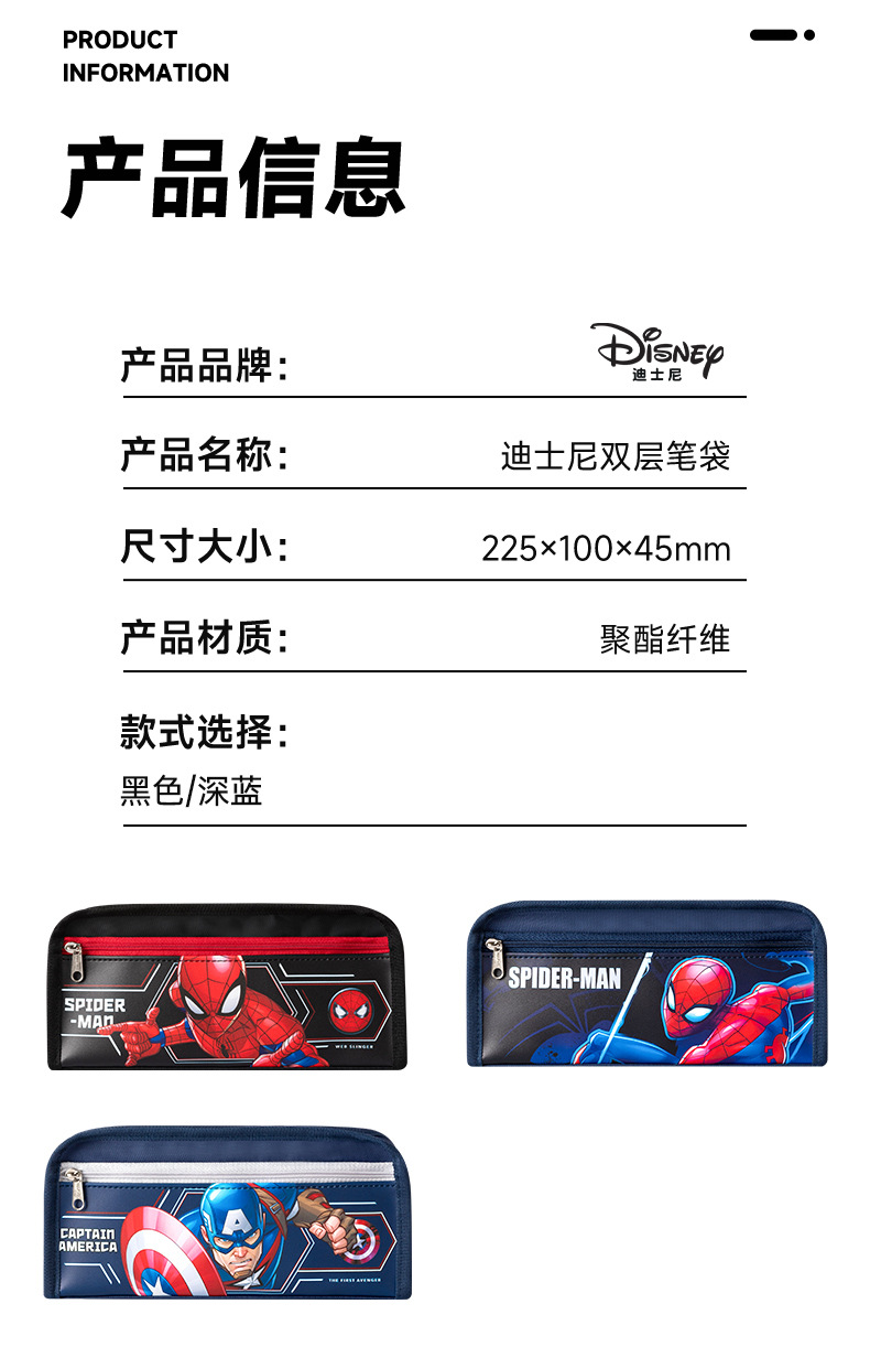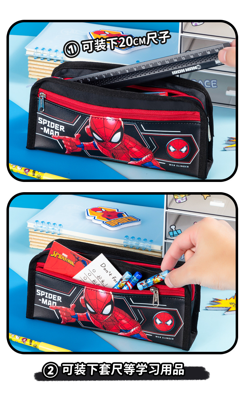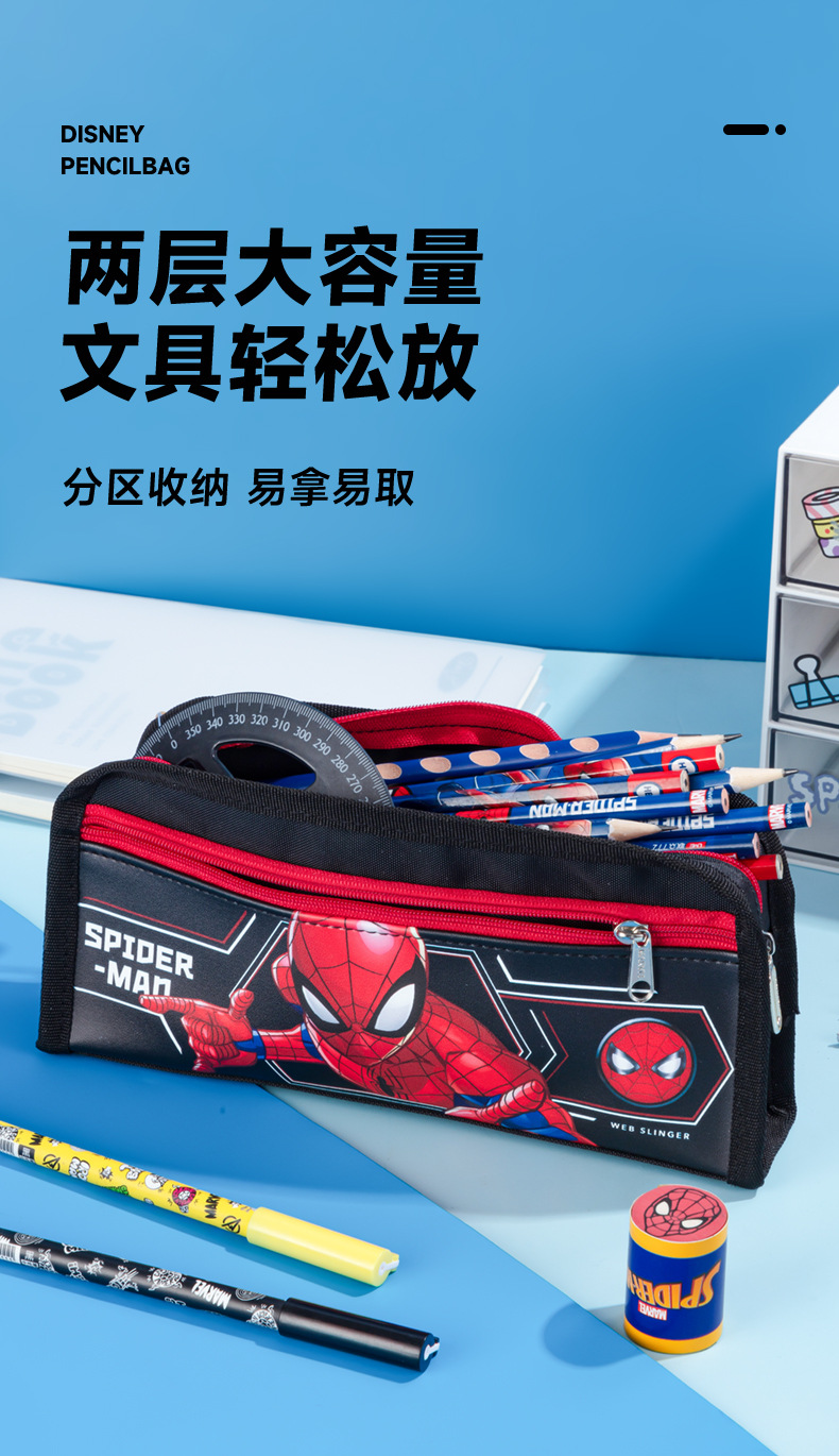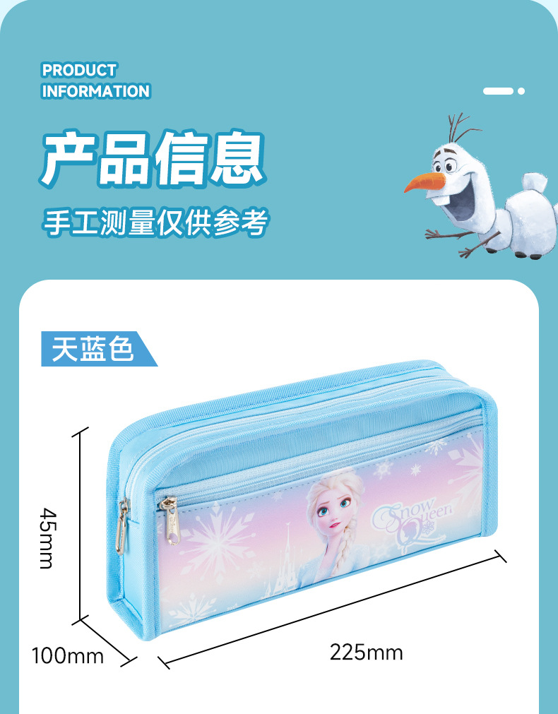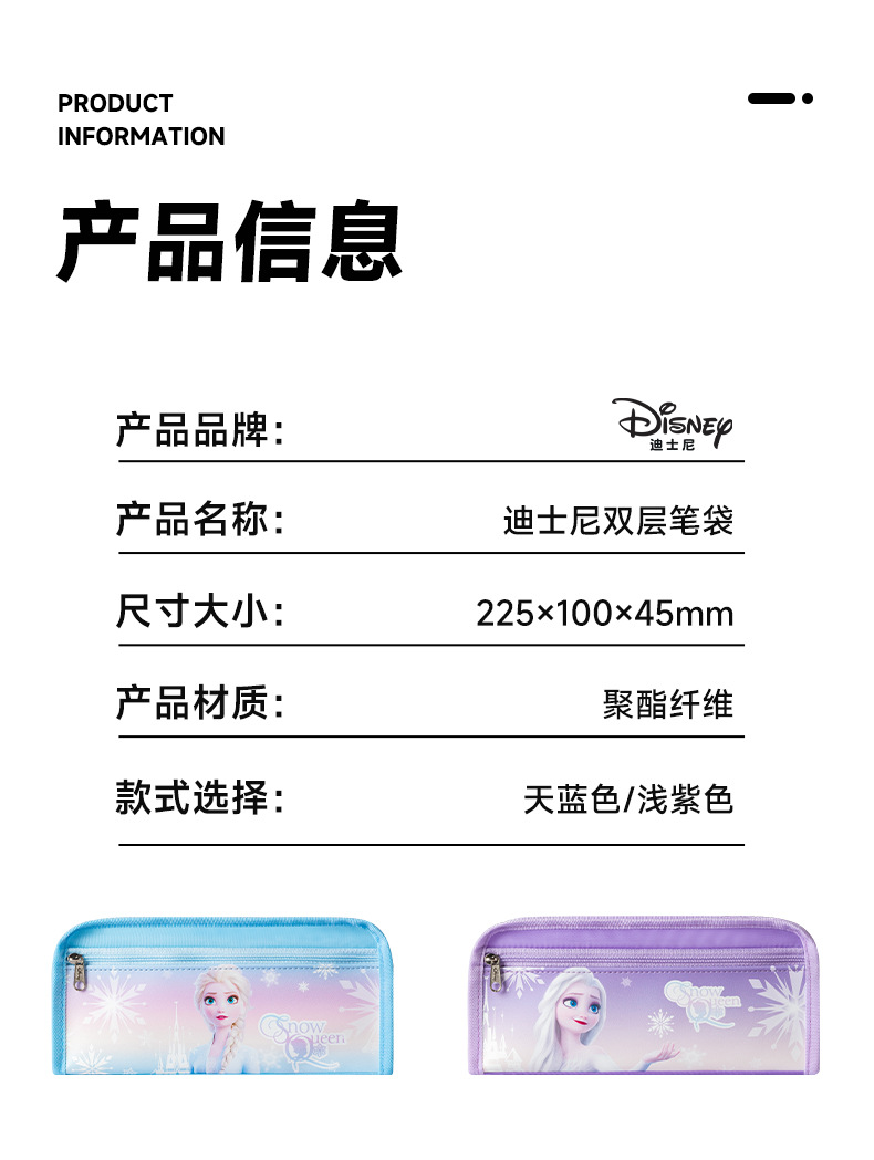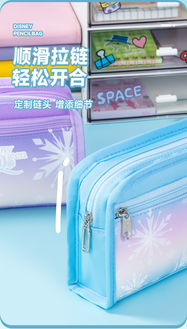 디즈니 만화 마블 얼음과 눈 시리즈 더블 레이어 연필 케이스 초등학교 학생을위한 연필 케이스 대용량 저장 남녀 문구 가방