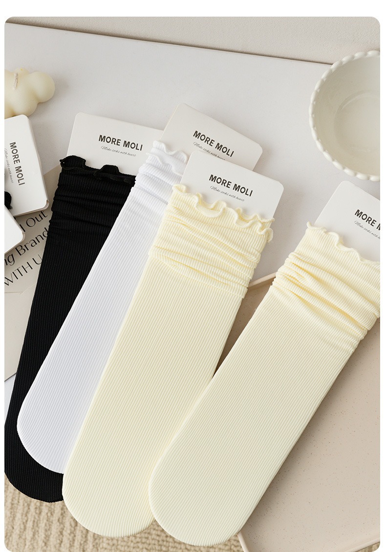 아이스 아이스 양말 우드 이어 사이드 양말 여름 통기성 중간 튜브 수직 스트립 흑백 양말 쿨 센스 아이스 실크 레이스 팩 양말