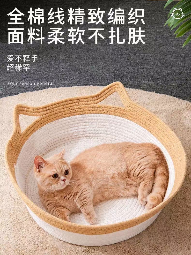 고양이 둥지 사계절 유니버설 코튼 밧줄 고양이 스크래치 보드 통합 여름 시원한 둥지 짠 고양이 둥지 개 둥지 먼지 방지 및 세척 가능스토어 가기